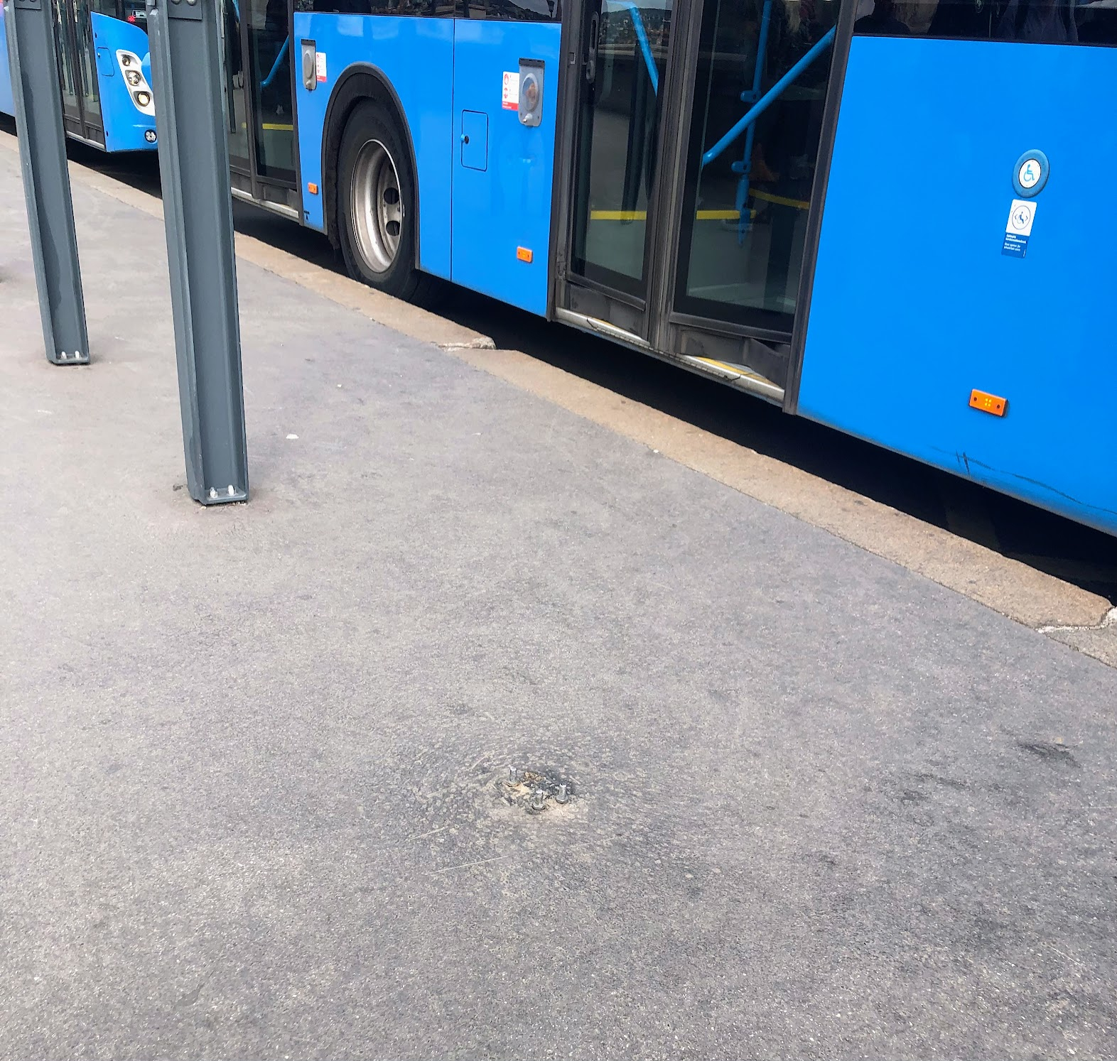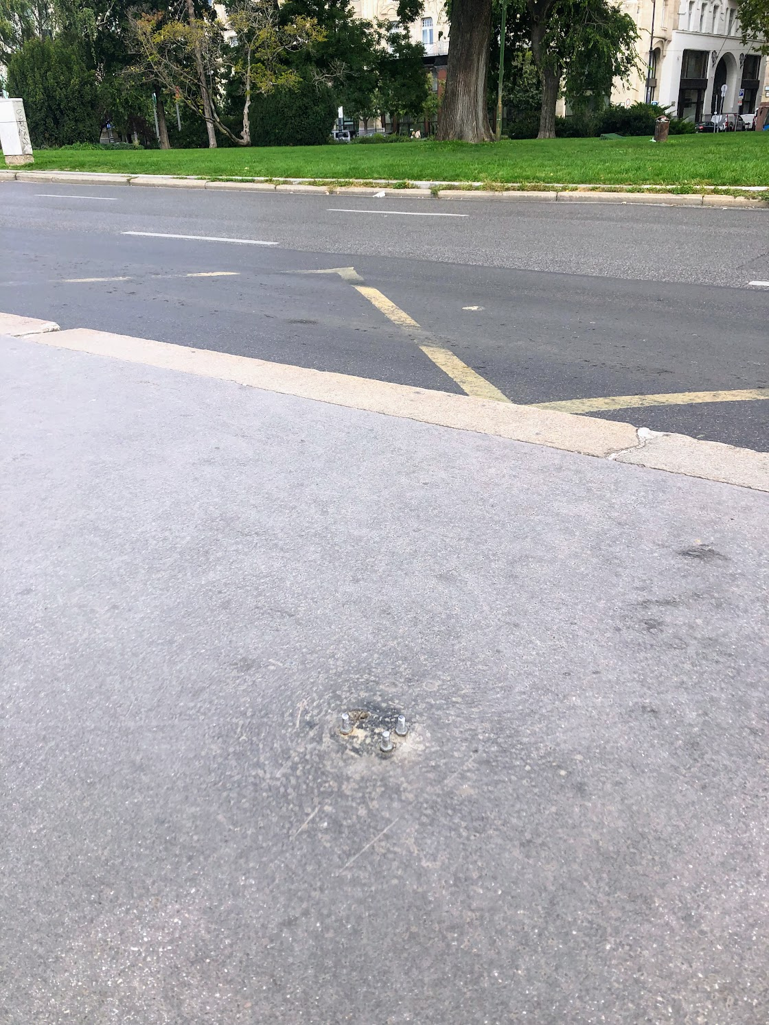BP V.ker Széchenyi téri buszmegállóban (centrum felé) kidőlt/kidöntöttek egy korlátot. Az azt tartó csavarok a járdán kb észrevétlenül vannak. Könnyen át lehet esni rajtuk a buszokból leszállván-itt mindig nagy a zsúföltság amúgy is.