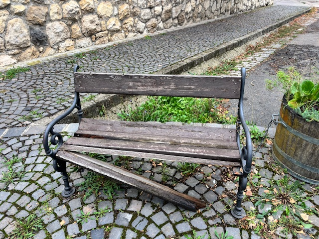 Szörnyű állapotban vannak a padok a Temes lépcső alján a Kós szobornál. Ülésre alkalmatlanok, szét vannak törve.