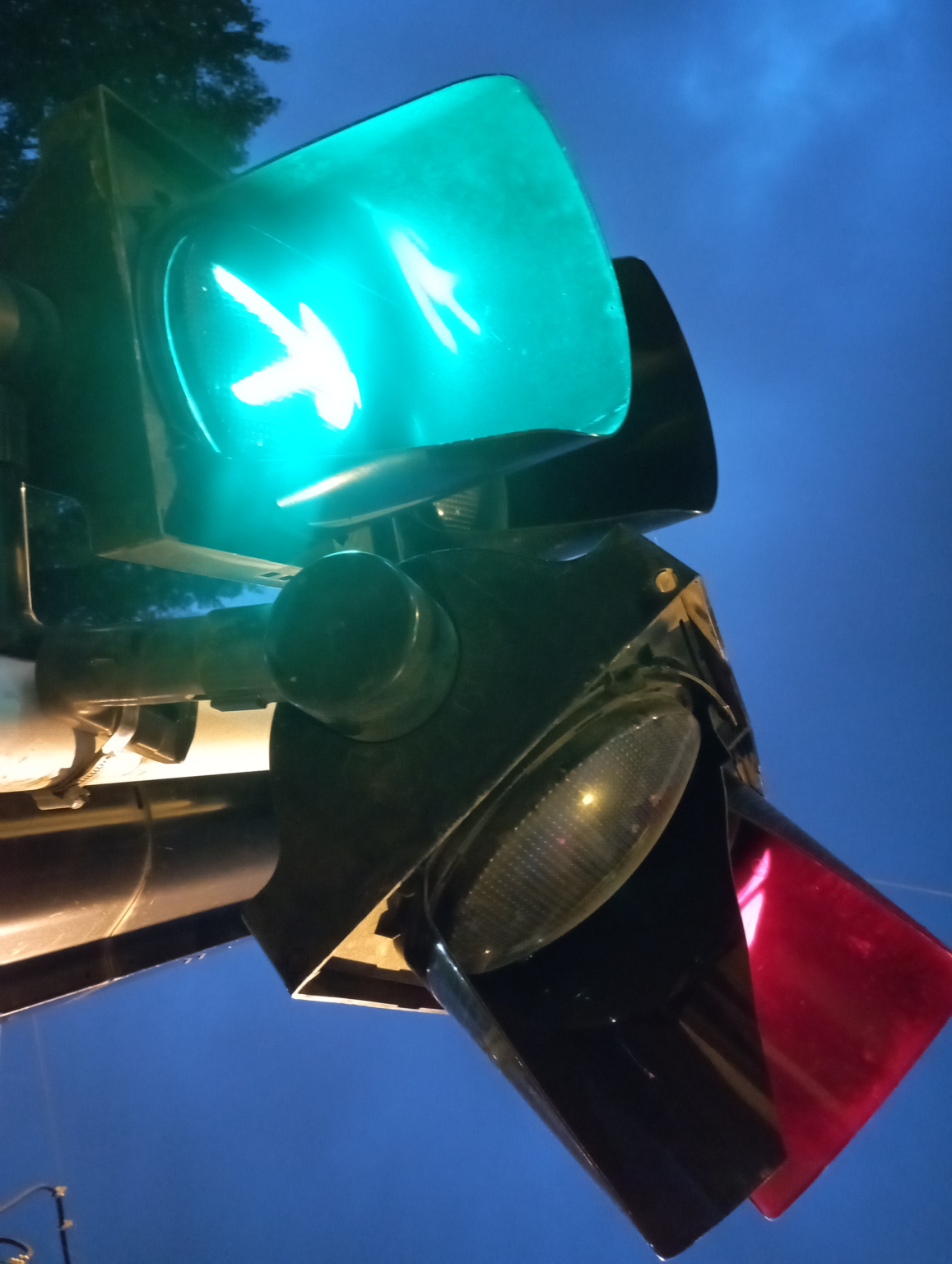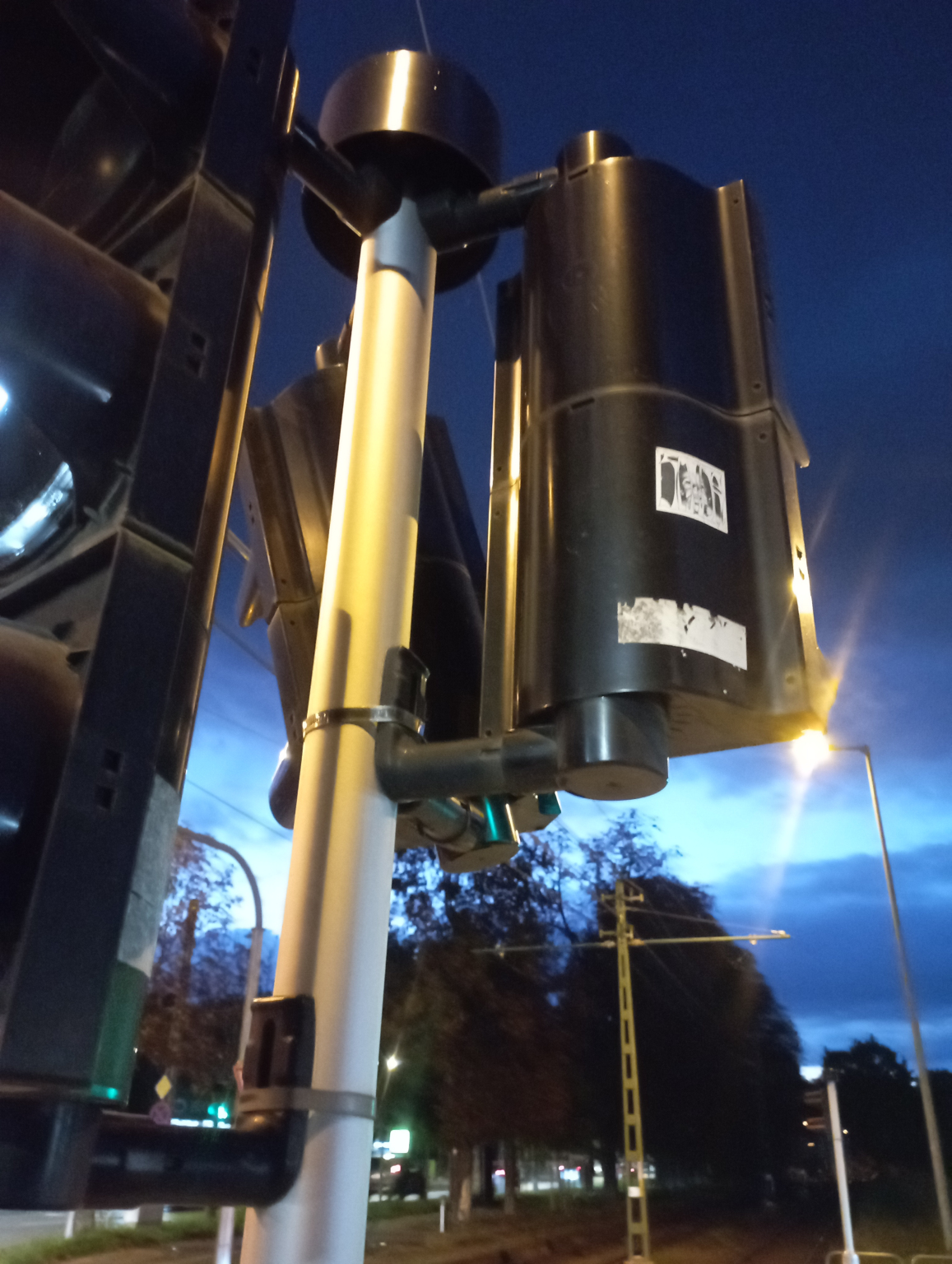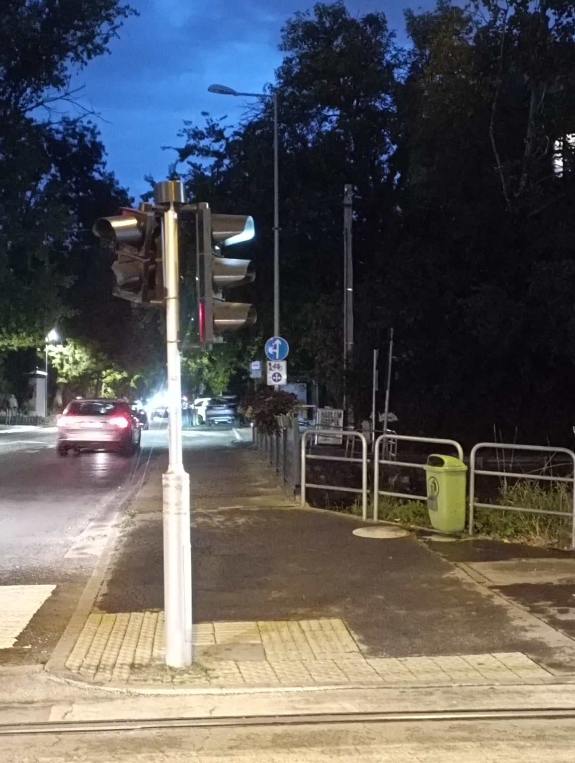 A villamossínt keresztező gyalogosátkelőhely lámpája nem jó felé néz