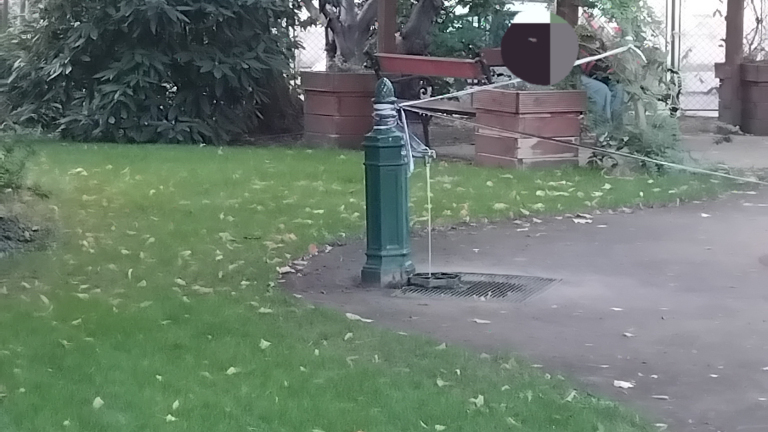 A csap folyamatosan folyik a kosarpalya mellett, az edzős resznel.