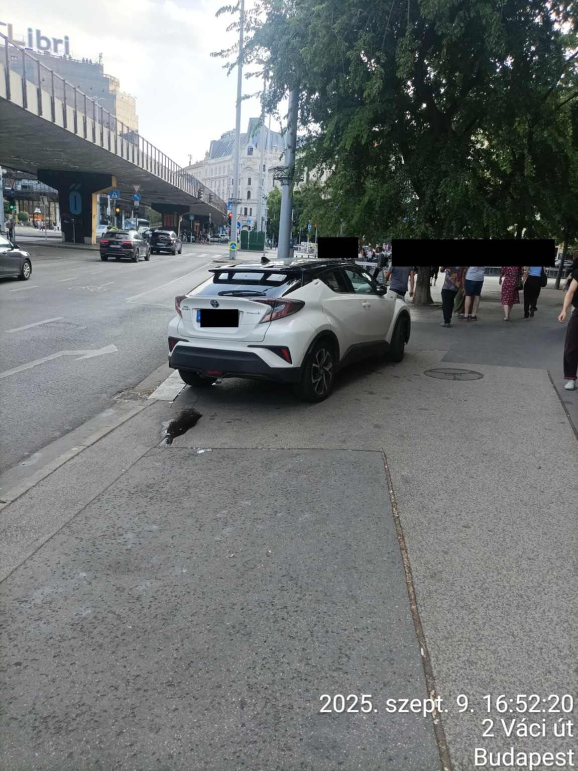 A képen látható autó minden délután ugyanott parkol a járdán. Láthatóan a parkolási díjat kívánja ezzel a módszerrel megúszni, mivel itt a parkolási ellenőrök nem büntetnek, mert ez nem parkolóhely. Ezen a szakaszon is nagyon hiányoznak a járdát védő karók