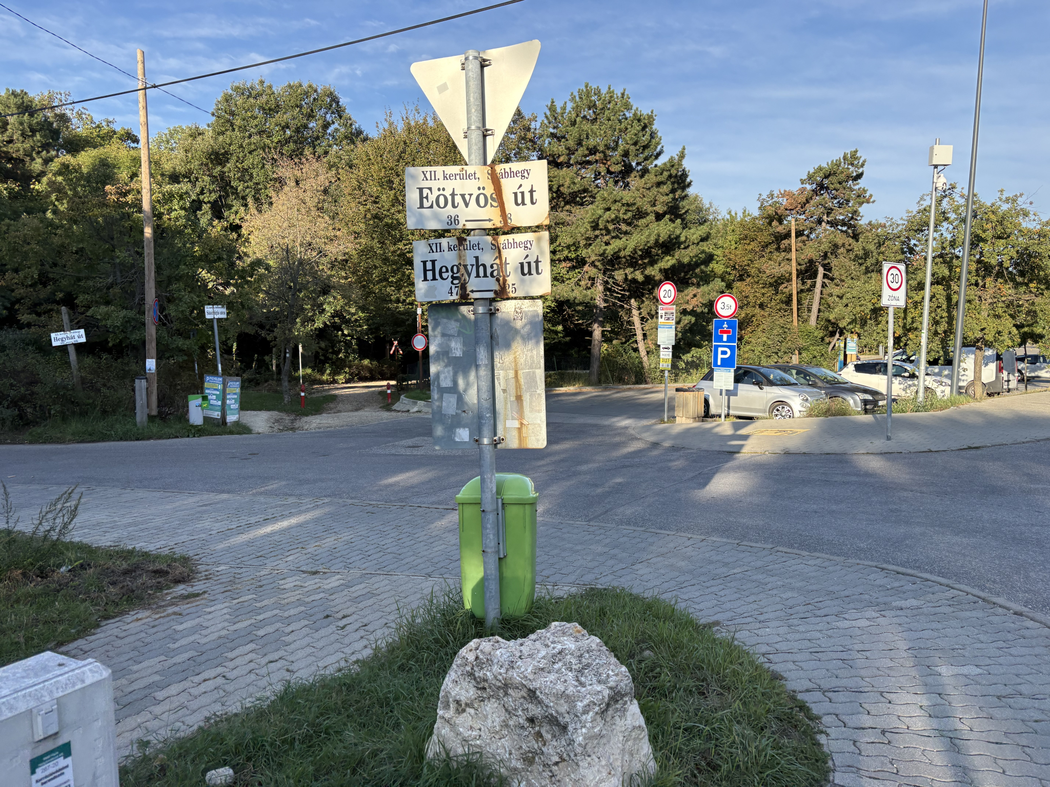Eötvös út és hegyhat út sarkán az utcatablak meg vannak rongálva és rossz irányba mutatnak