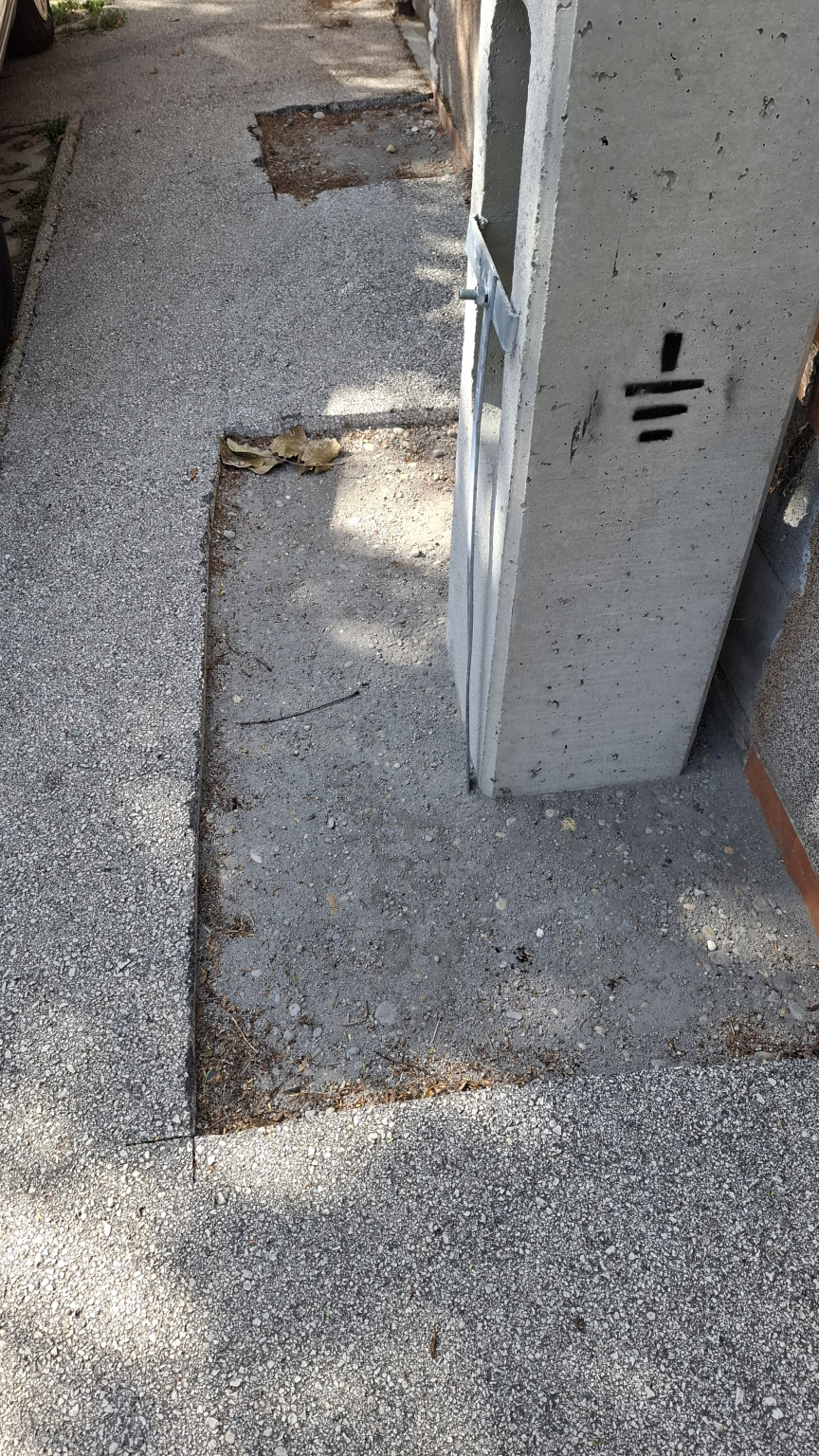 Az utcában több helyen villanyoszlopot cseréltek, itt viszont feltörték a járdát is, amit azóta sem javítottak, veszélyes és babakocsival nehéz közlekedni ezen a szakaszon.