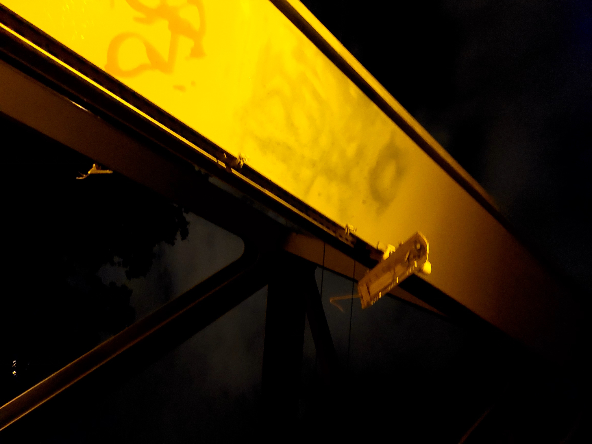 A rendőrségi kamera, amivel az nézték, hogy motorosok ne közlekedjenek a kerékpáros és gyalogos Északi Vásúti Hídon át, le lett verve. Régóta áll így ott.