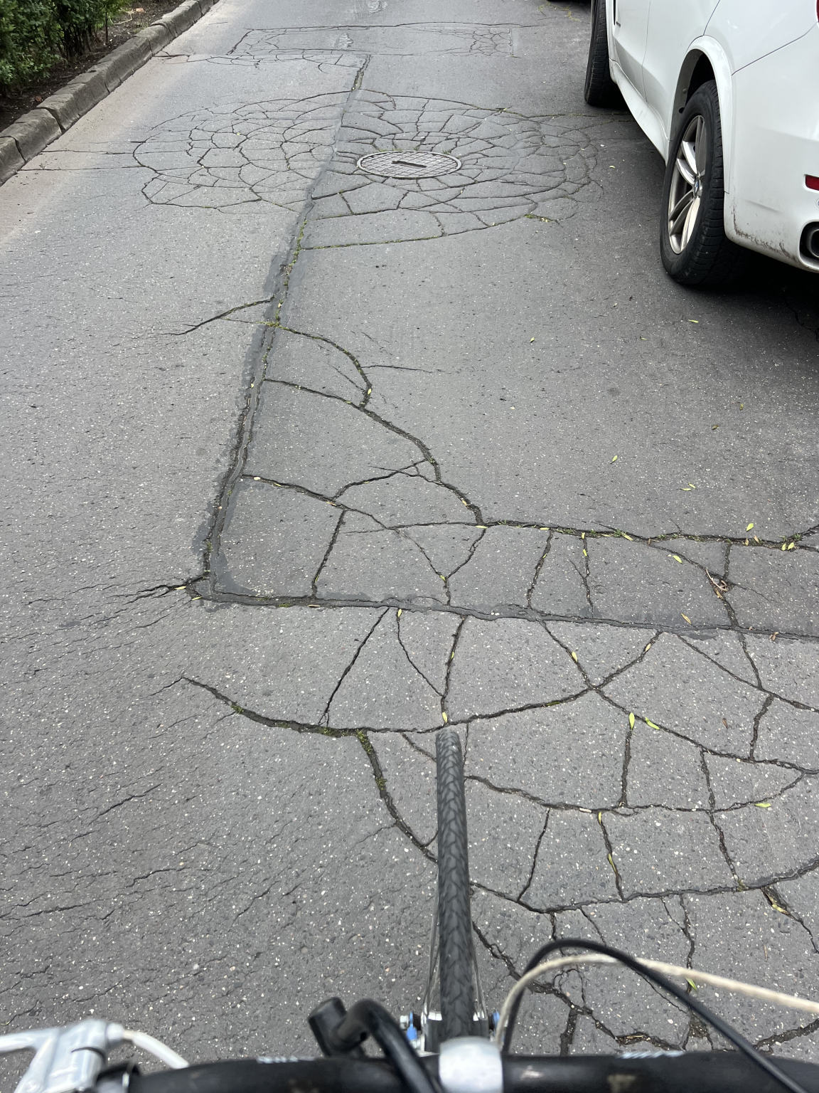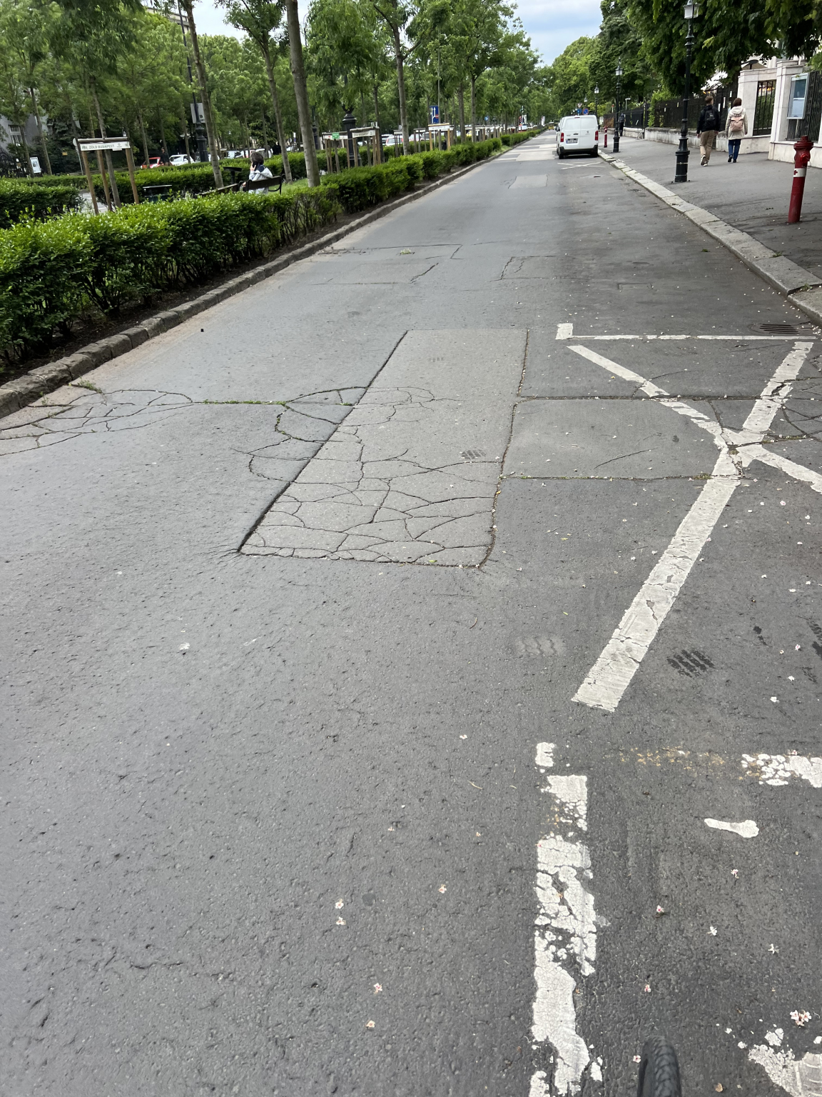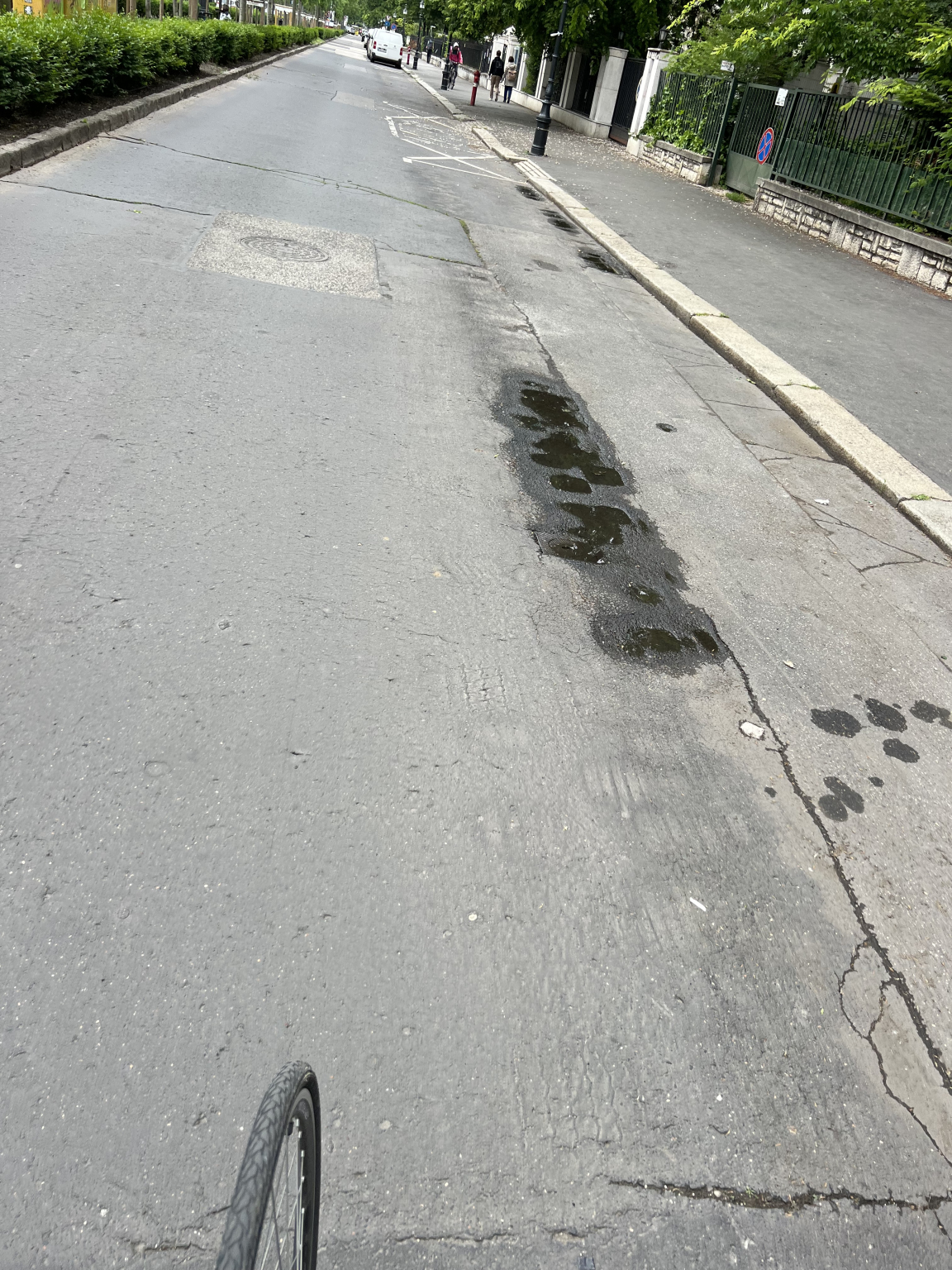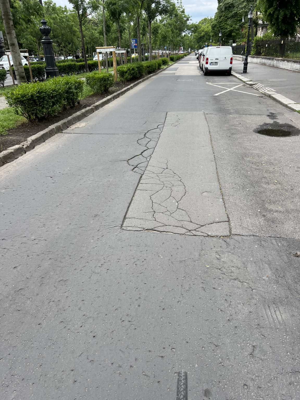 Az Andrássy úton gyakorlatikag a ligettől kezdve végig borzalmas állapotban van a szervíz út és ezáltal a bicikli út is. Teljesen szét van töredezve, tele kátyúkkal, főleg a Kodály Körönd utántól az Oktogonig, de végig katasztrofális állapotban van.