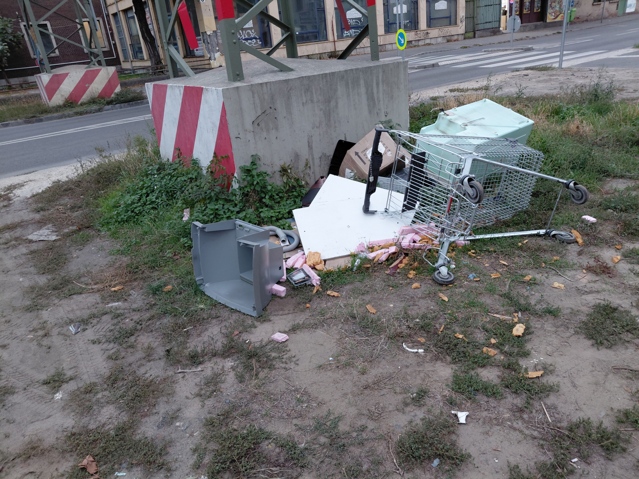 A Fertő utca déli oldalán, a Makk utca és Bihari út közti szakaszon, a Makk utca sarkához közel, az egyik távvezetékoszlop lábánál, az új gyalogátkelő mellett szemét és műszaki cikkek roncsai hevernek nagy rakásban. Sőt, még egy bolti bevásárlókocsi is fekszik ott! Kérem, tisztítsák meg az utcát.