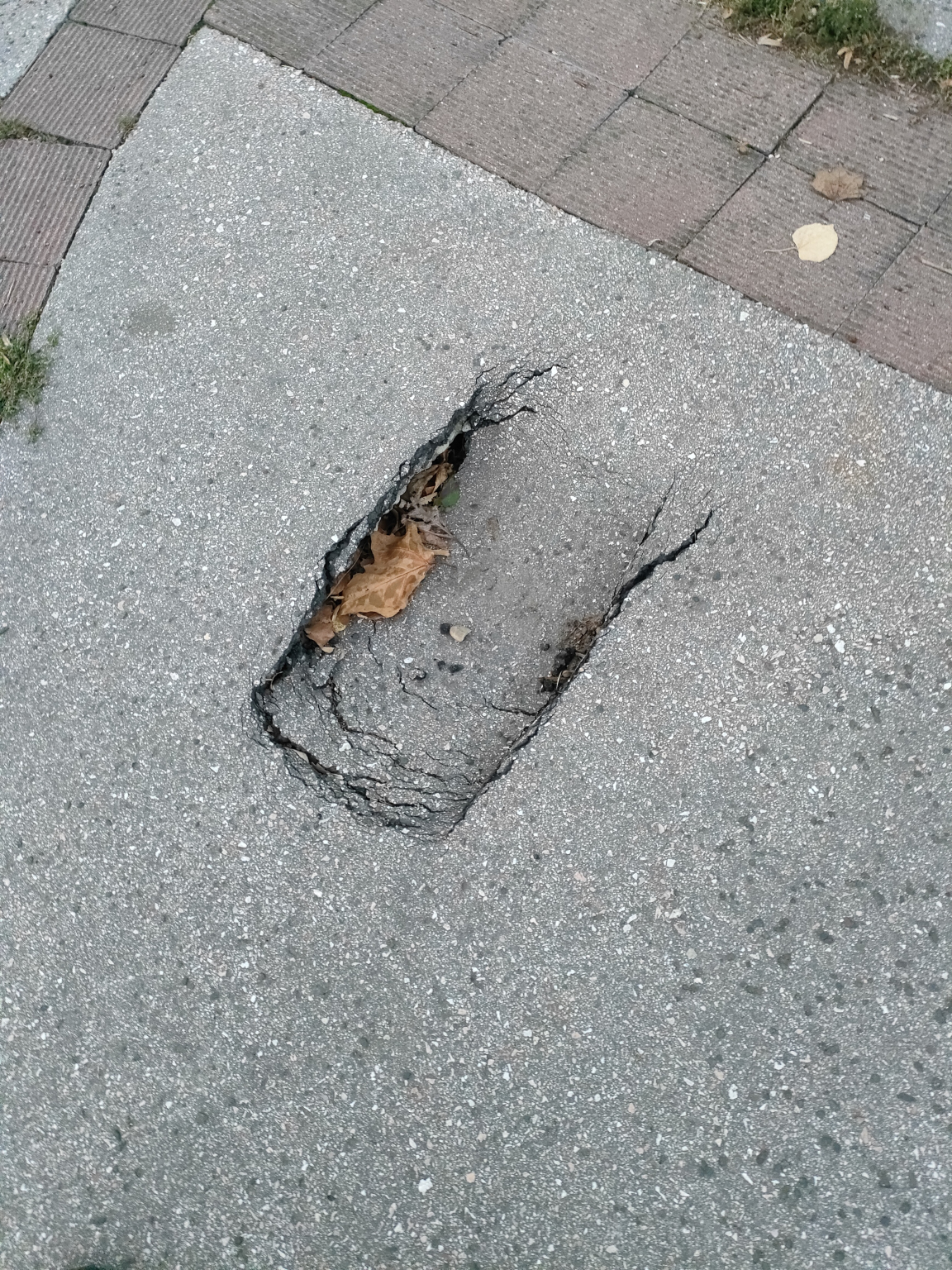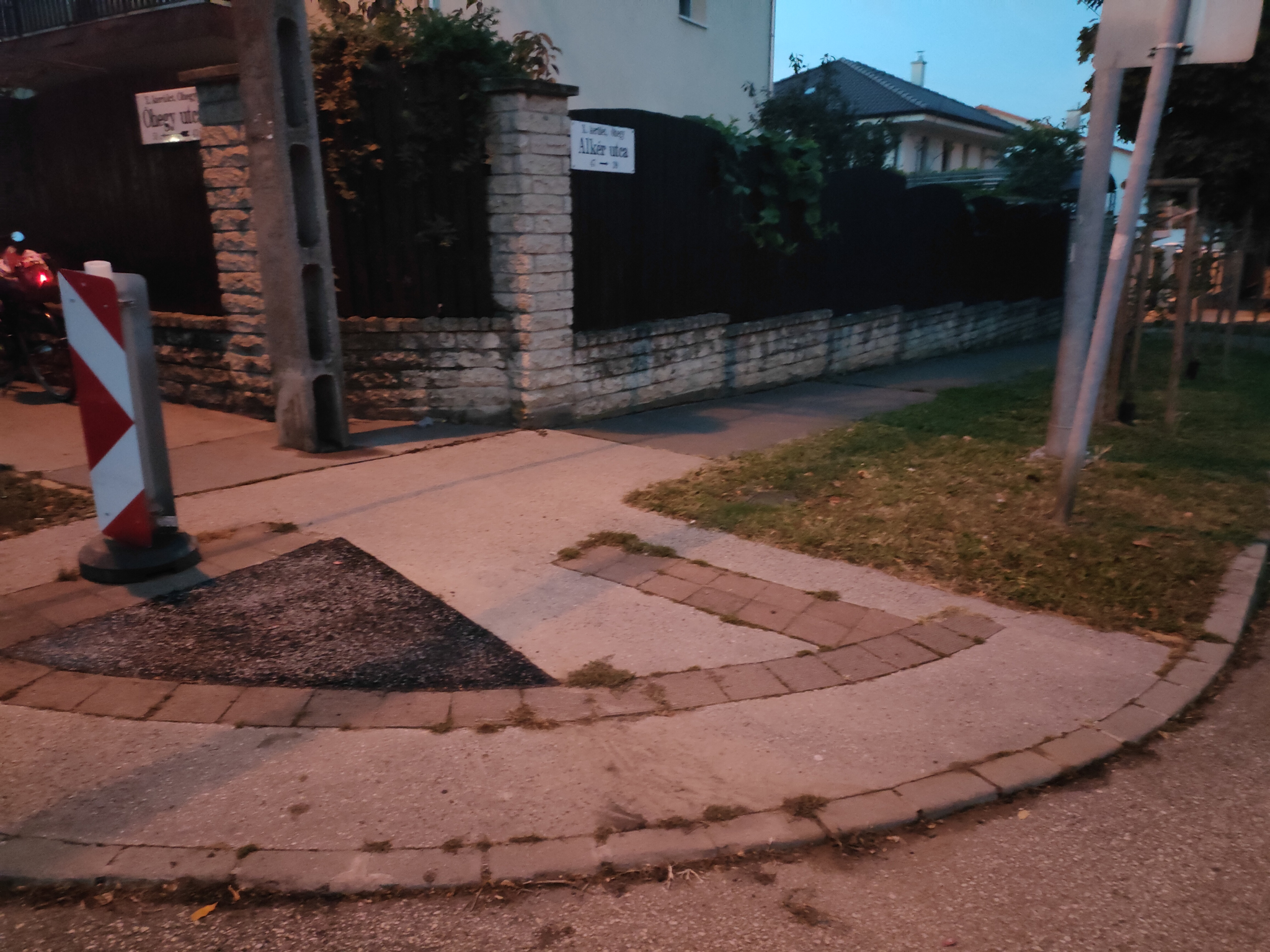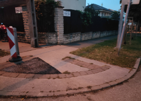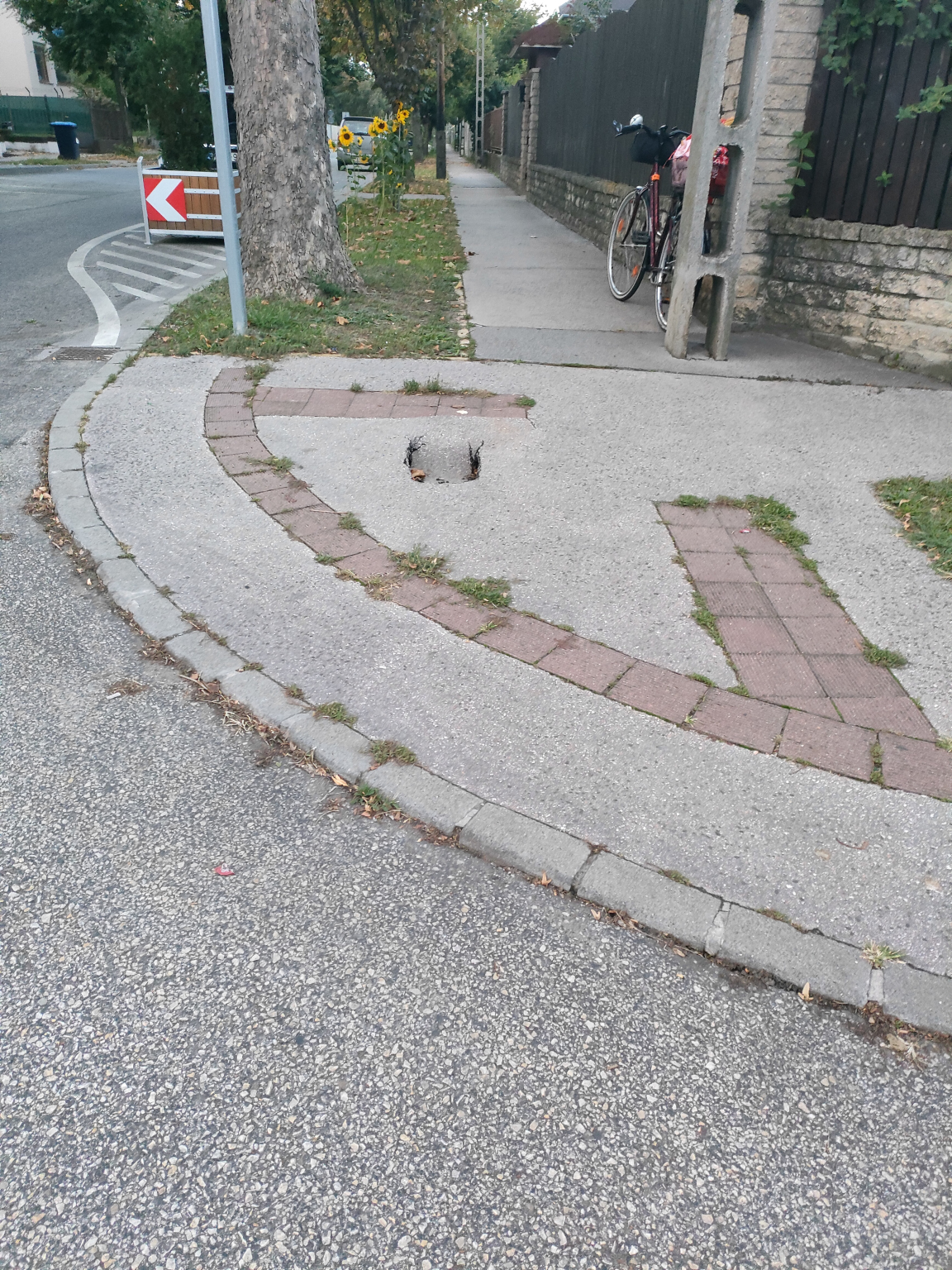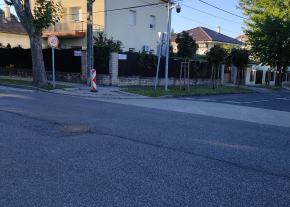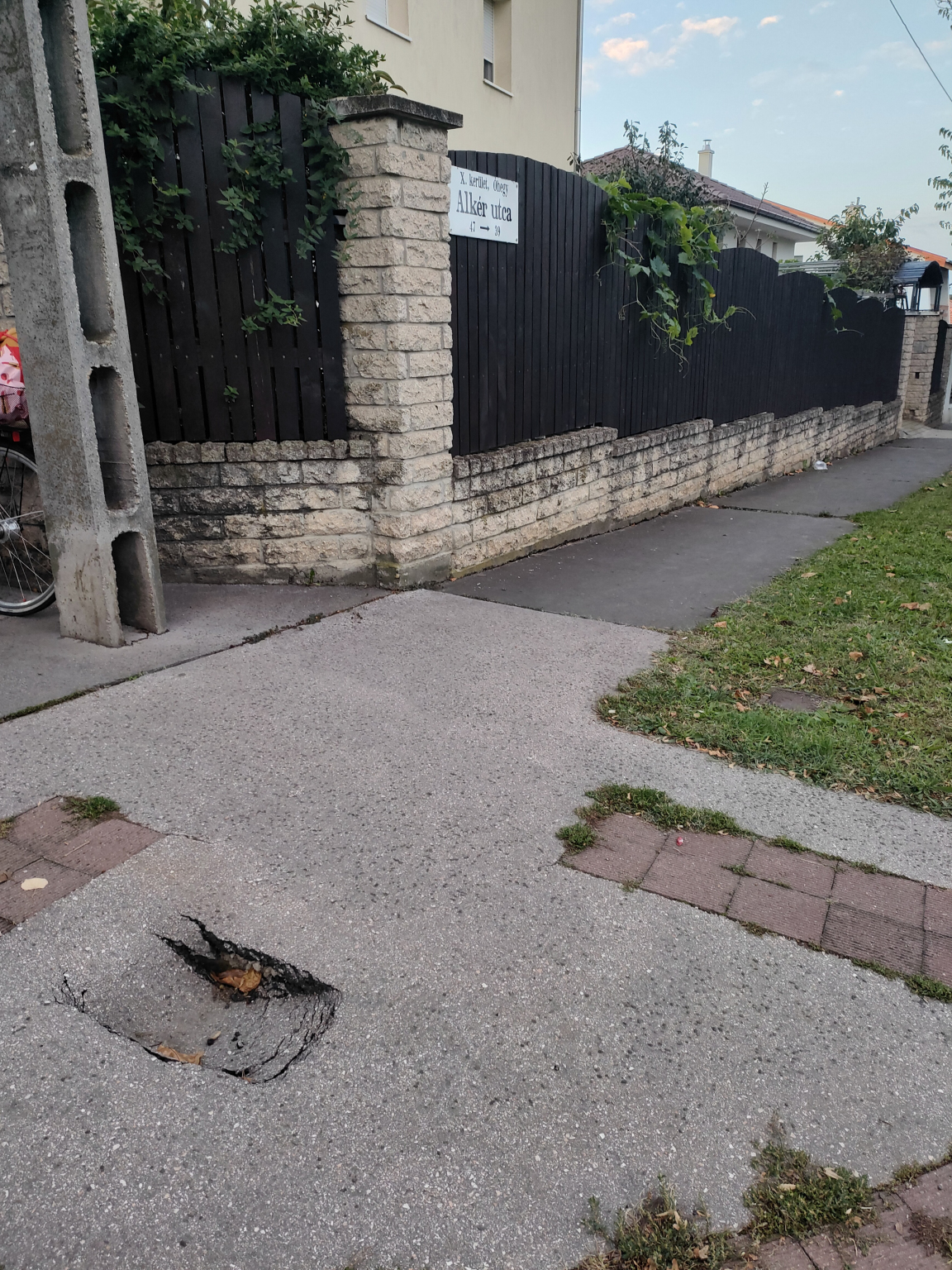 Az Alkér utca és az Óhegy utca sarkán egy gépjármű kerék alatt beszakadt a hárfa burkolata.