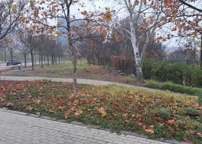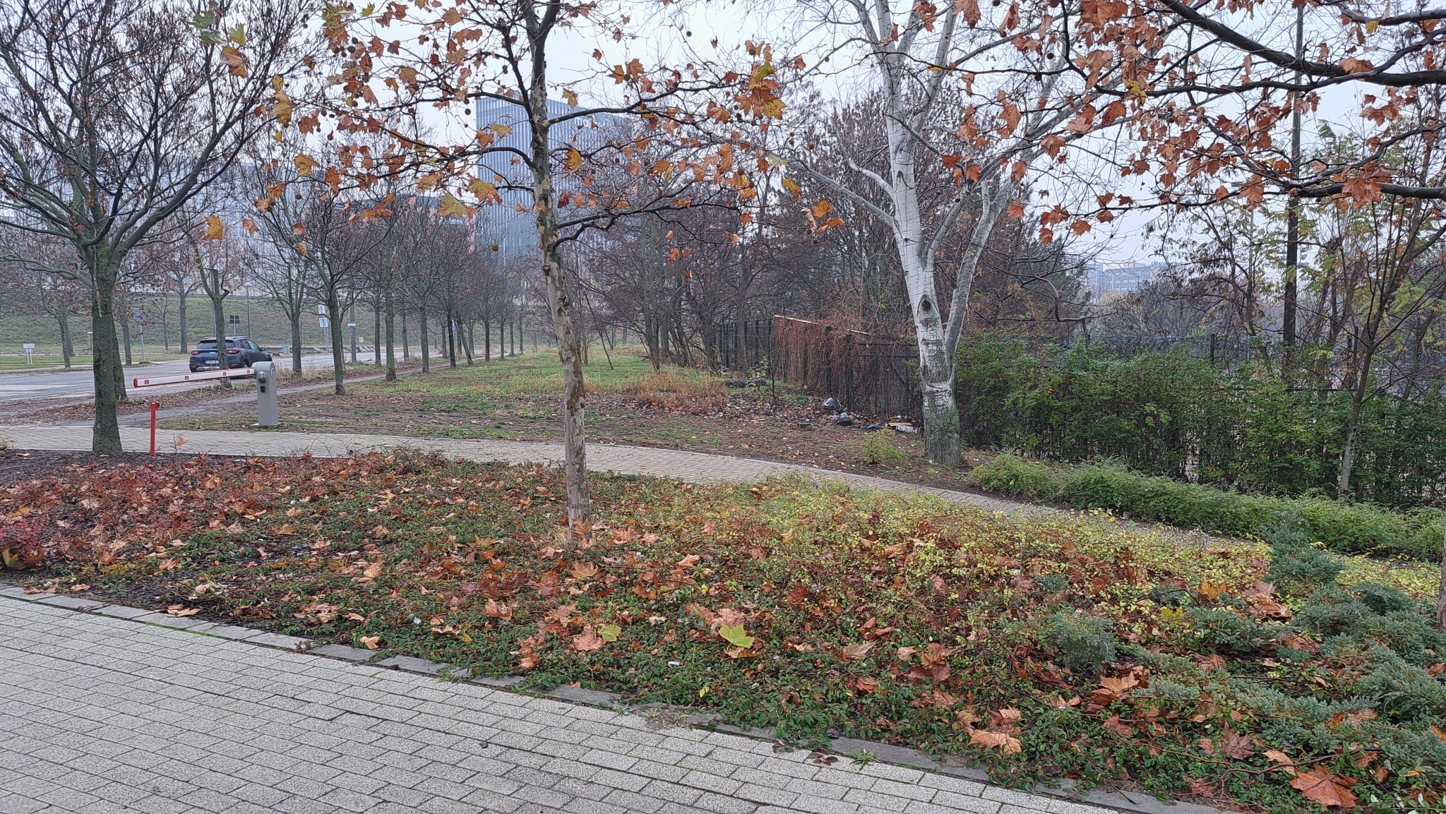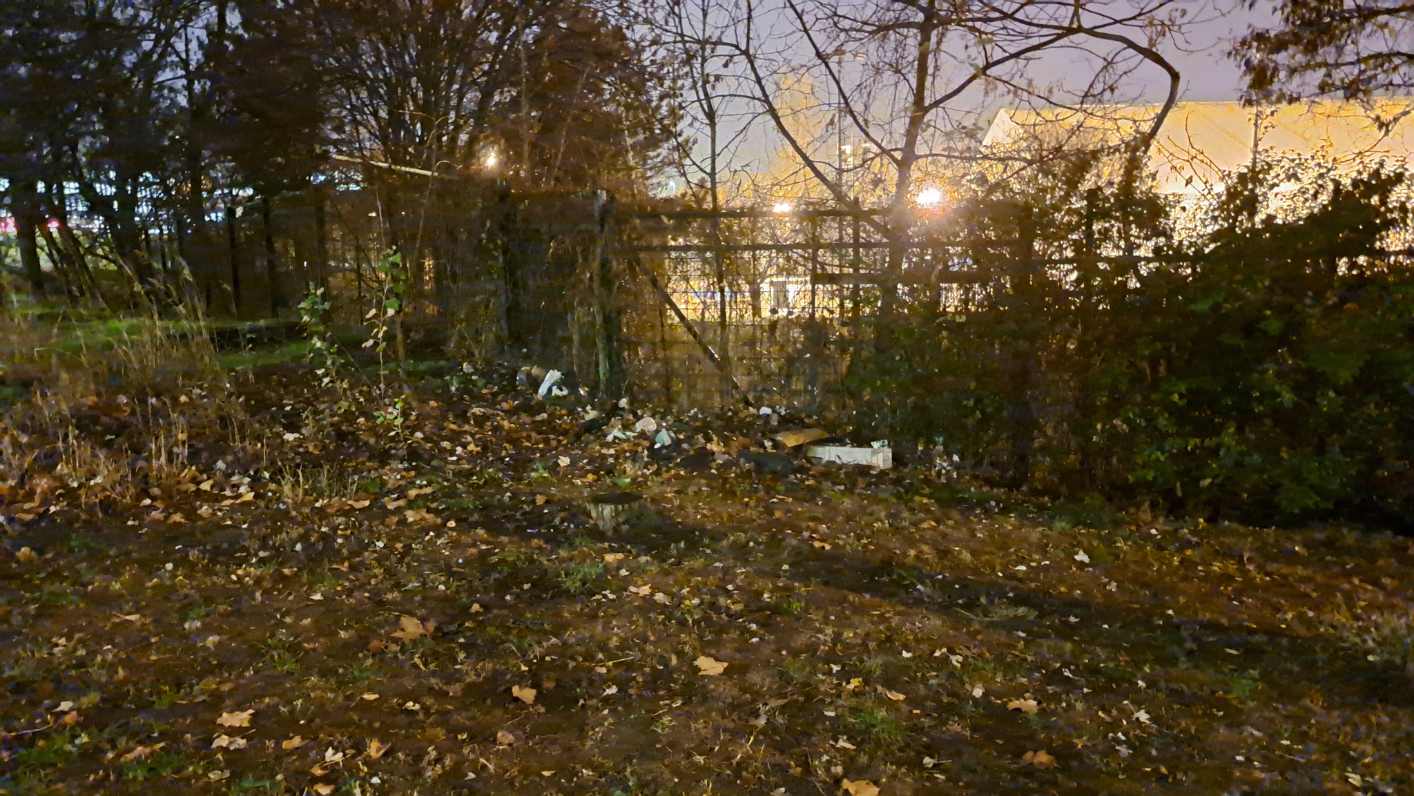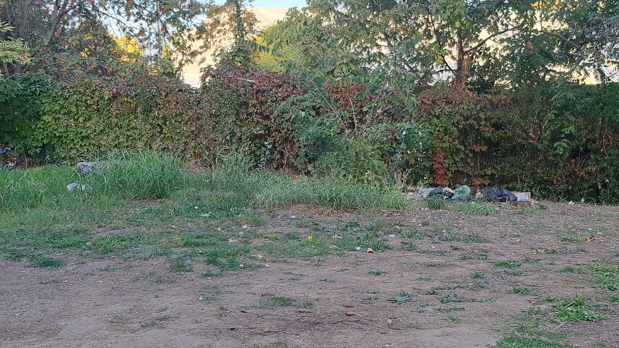 A Hevesy György úton a sporttelep kerítése mellett szemétkupac, kidobott matrac, a kórnyékén a zöldterület is tele szeméttel.