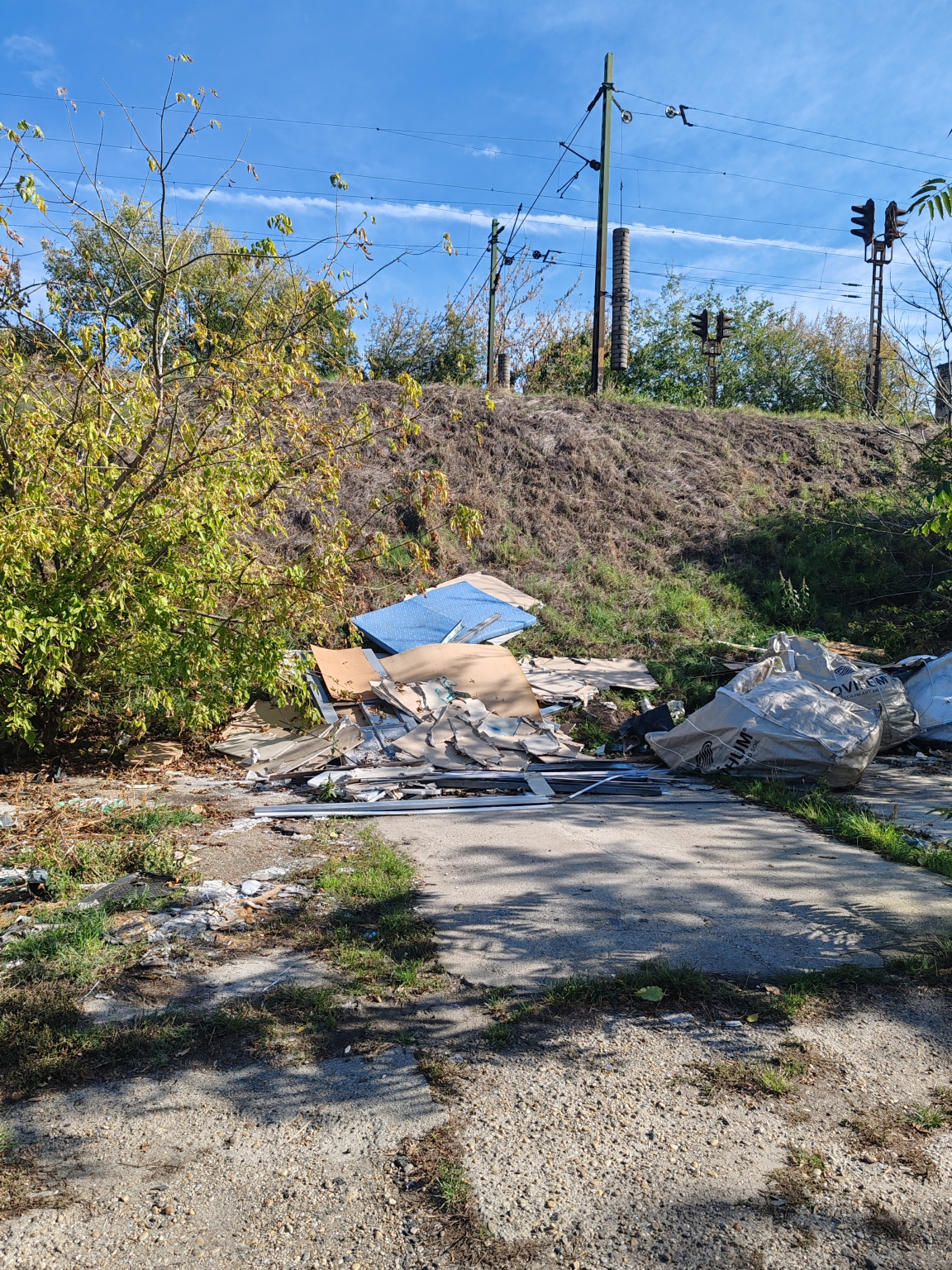 A Francia út és az Egressy út kereszteződésében a hirdetőtáblák alatt/mellett illegális szemétlerakó van.