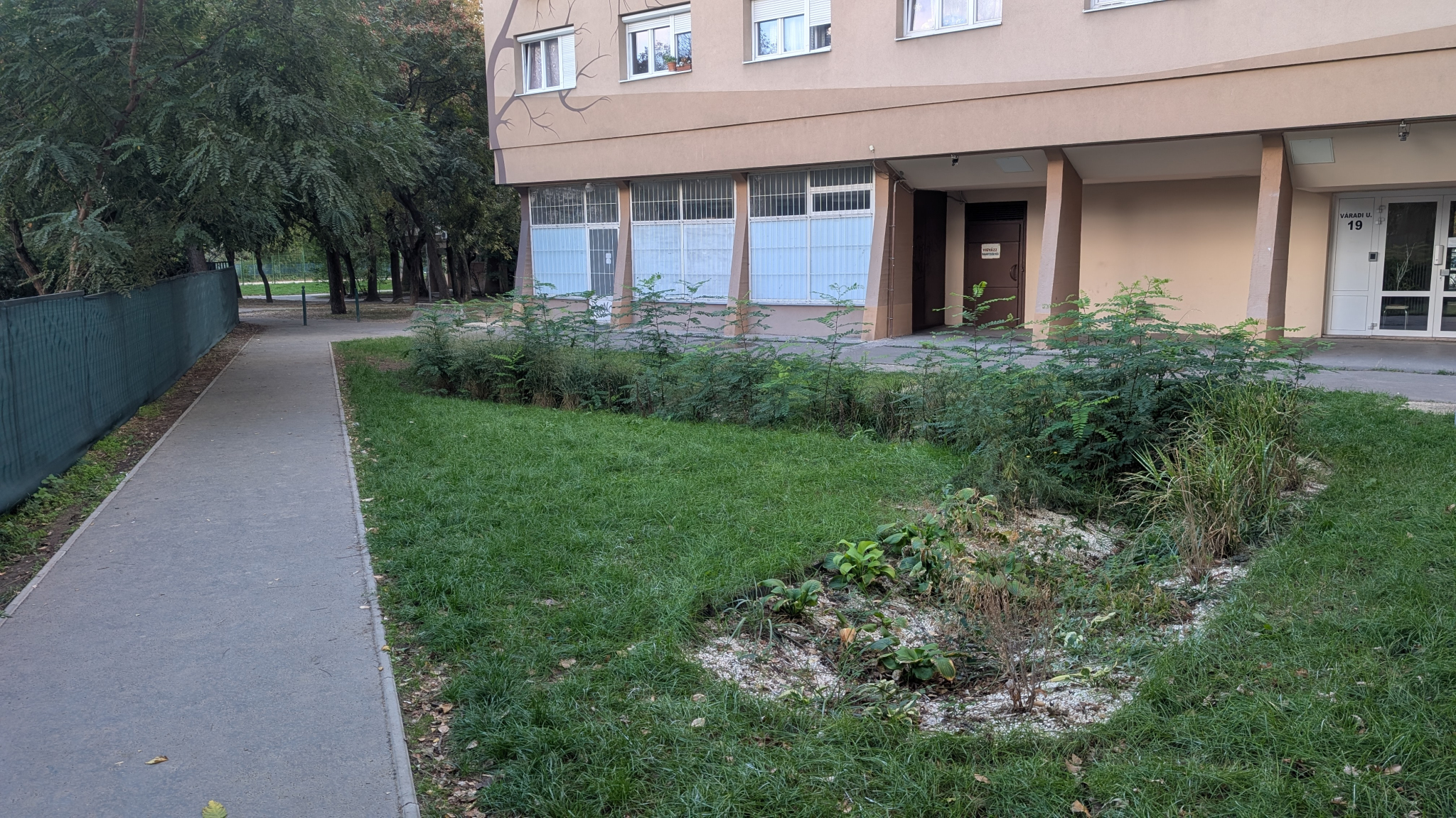 A Váradi u. 19. mögötti 1 éve átadott esőkert tele van akáccal. Kérjük szépen a kert alaposabb gondozását.