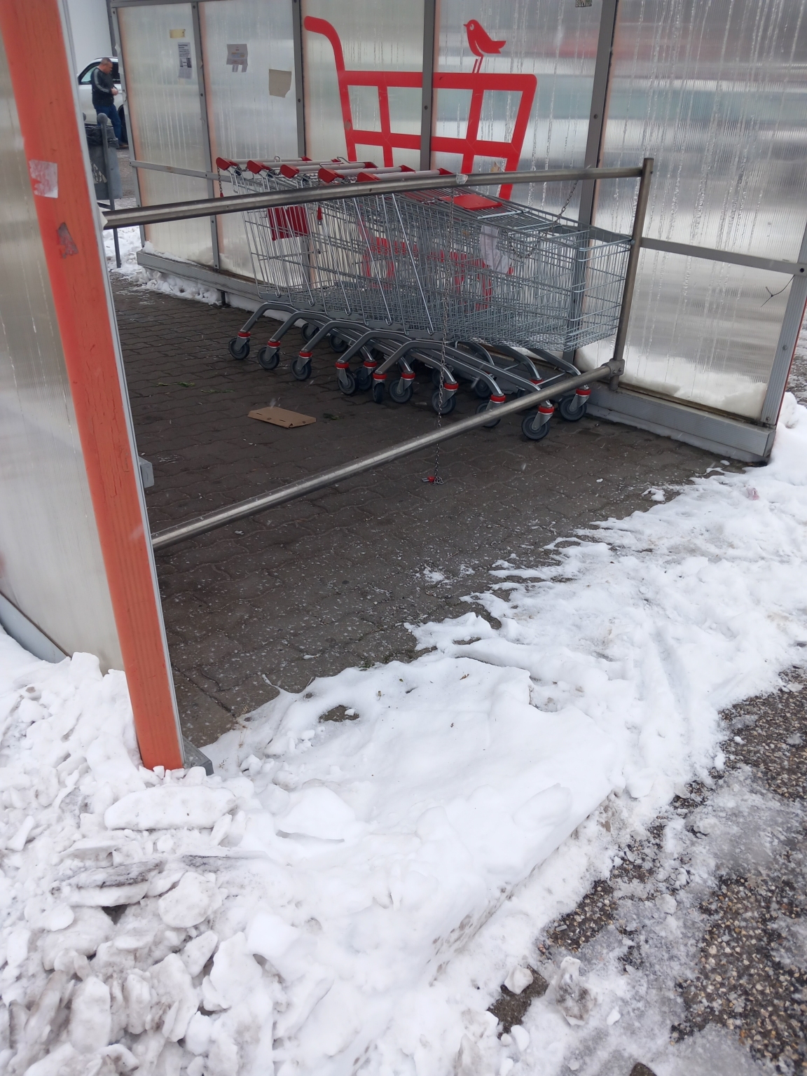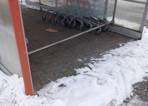 Az 1103 Budapest X.kerület Gyömrői út 99 szám alatt Újhegyi bevásárlóudvarnál található, Auchan bevásárlóközpontnál parkoló mellett a bevásárló kocsik tároló elválasztója teljesen megrongálódott