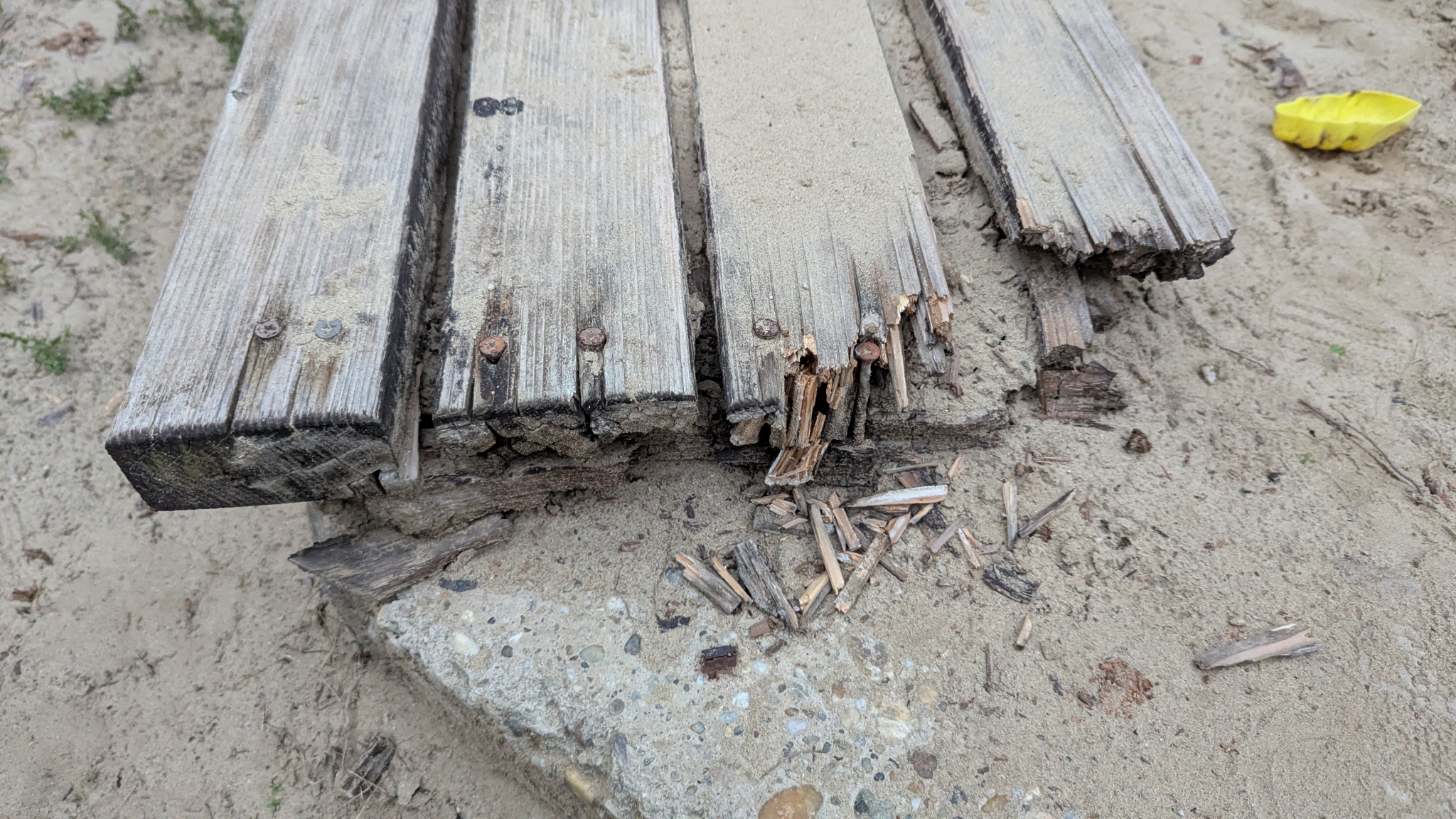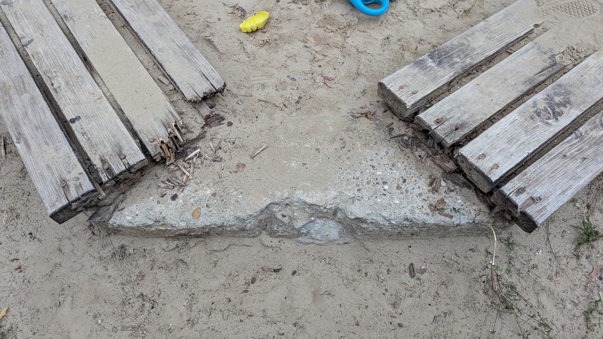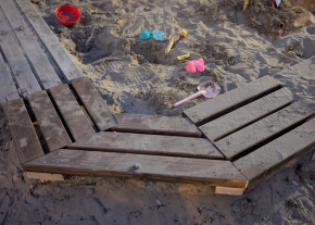 Széttört pad, sérült homokozó