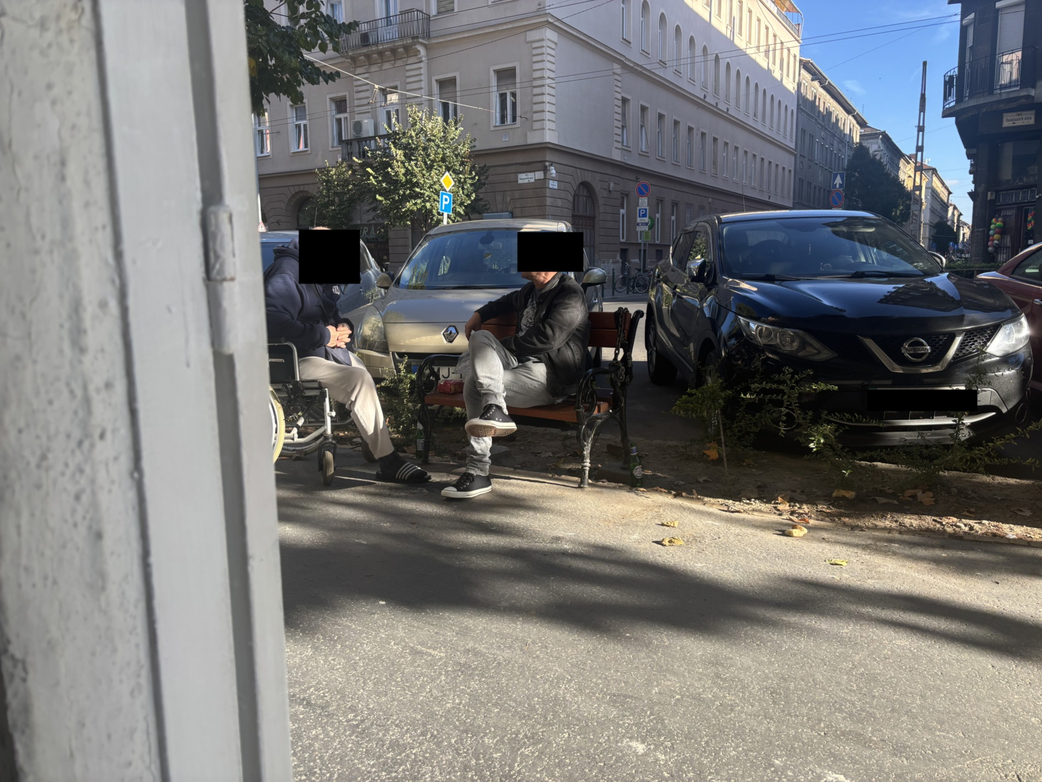 Üzlethelyiséggel szemben telepített, dohányzásra használt pad