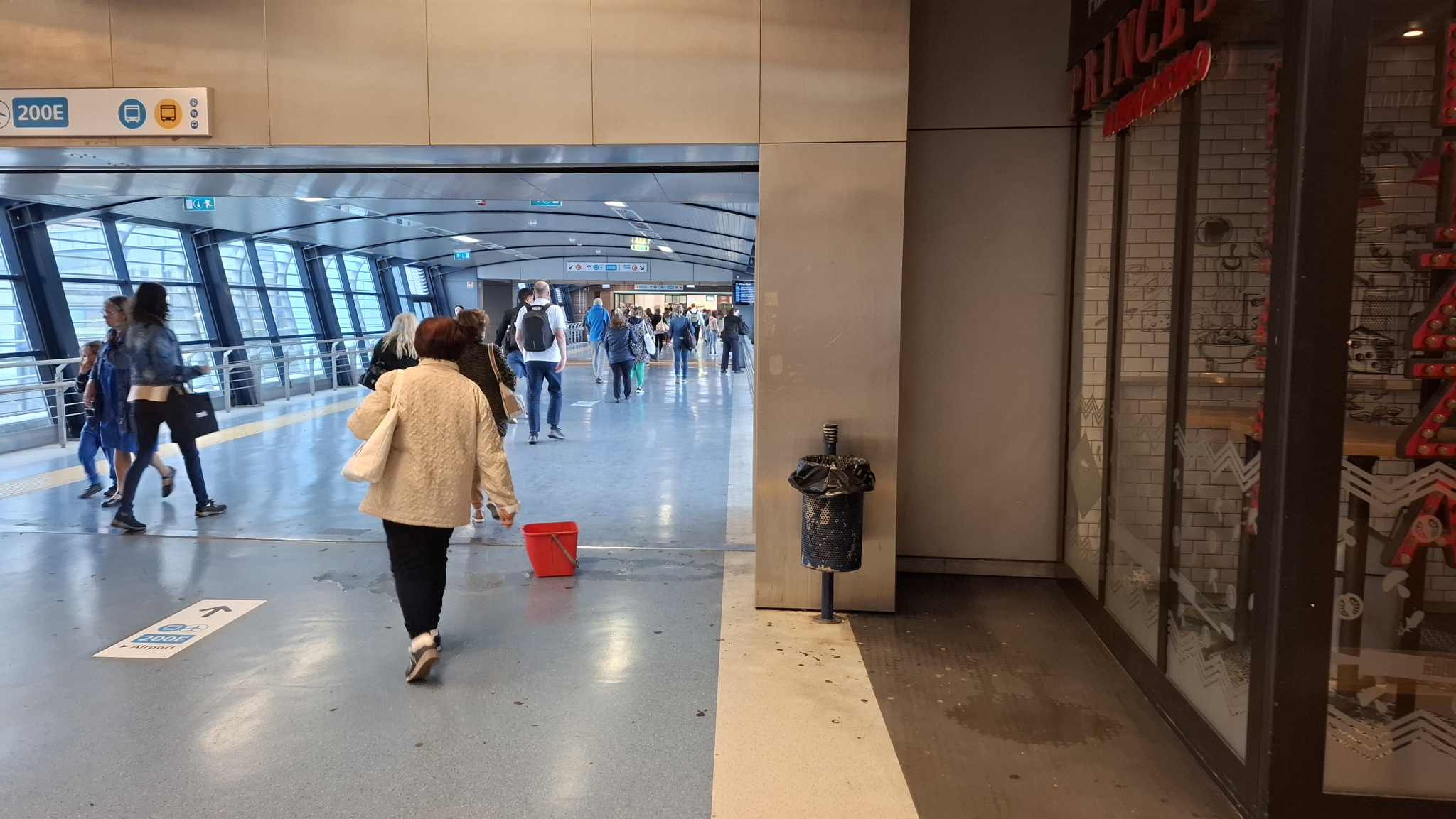 Egy másik beázás a mozgólépcső és az átvezető folyosó csatlakozásánál található, mely terület a KÖKI Terminál üzletközpont üzemeltetésébe tartozik, ezzel kapcsolatban a BKV Zrt.-nek nem illetékessége a válaszadás.