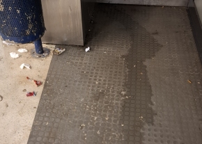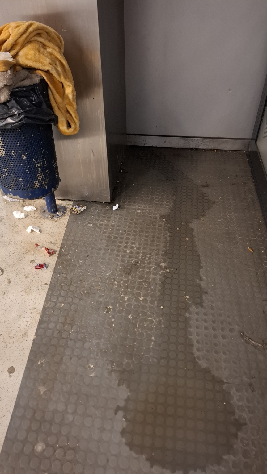@Koncz Tamás: ezen a képen már jól látszik, hogy azért néz ki vizeletnek a tócsa, mert a "faltőből folyik a víz", amikor esik, akkor a szemetestől jobbra kialakul ez a "mintha...