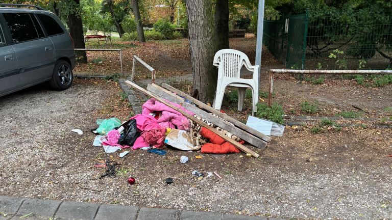 Az Ignotus utca 19-21. számok előtt valaki lerakott egy nagyobb rakás lomot.