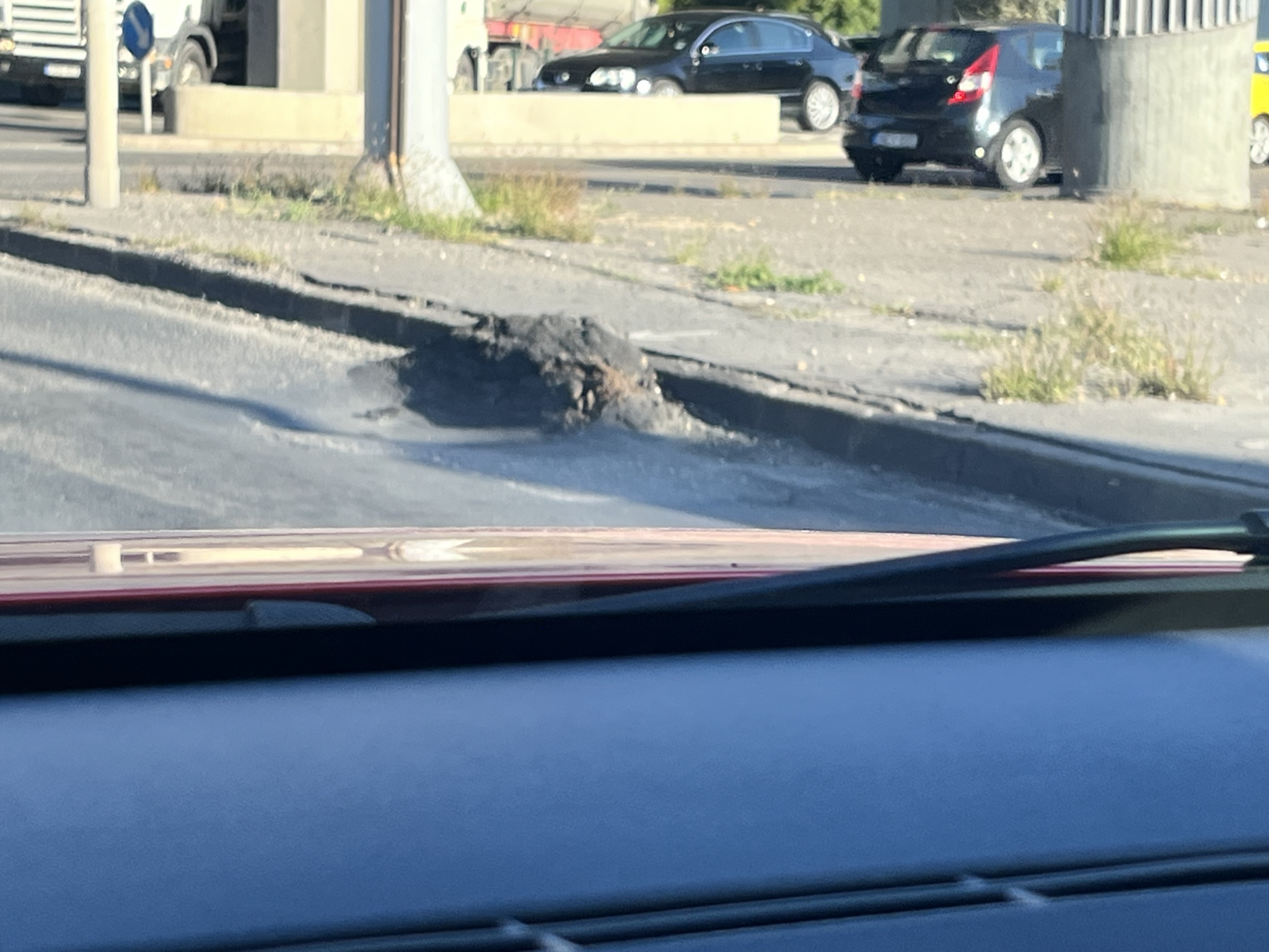 A Göncz Árpád városközpontnál, a végállomásnál ,Róbert Károly és a Váci út kereszteződésénél, a lámpánál, igen magasan felgyűrődött az aszfalt.