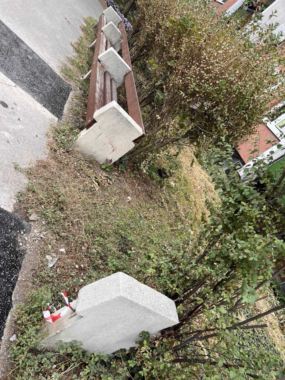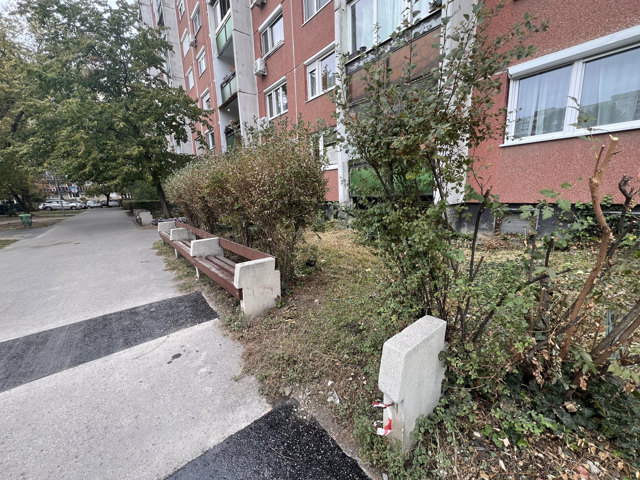 1043 Erzsébet utca 18 és 20 között a park felőli oldalon hiányos a pad.