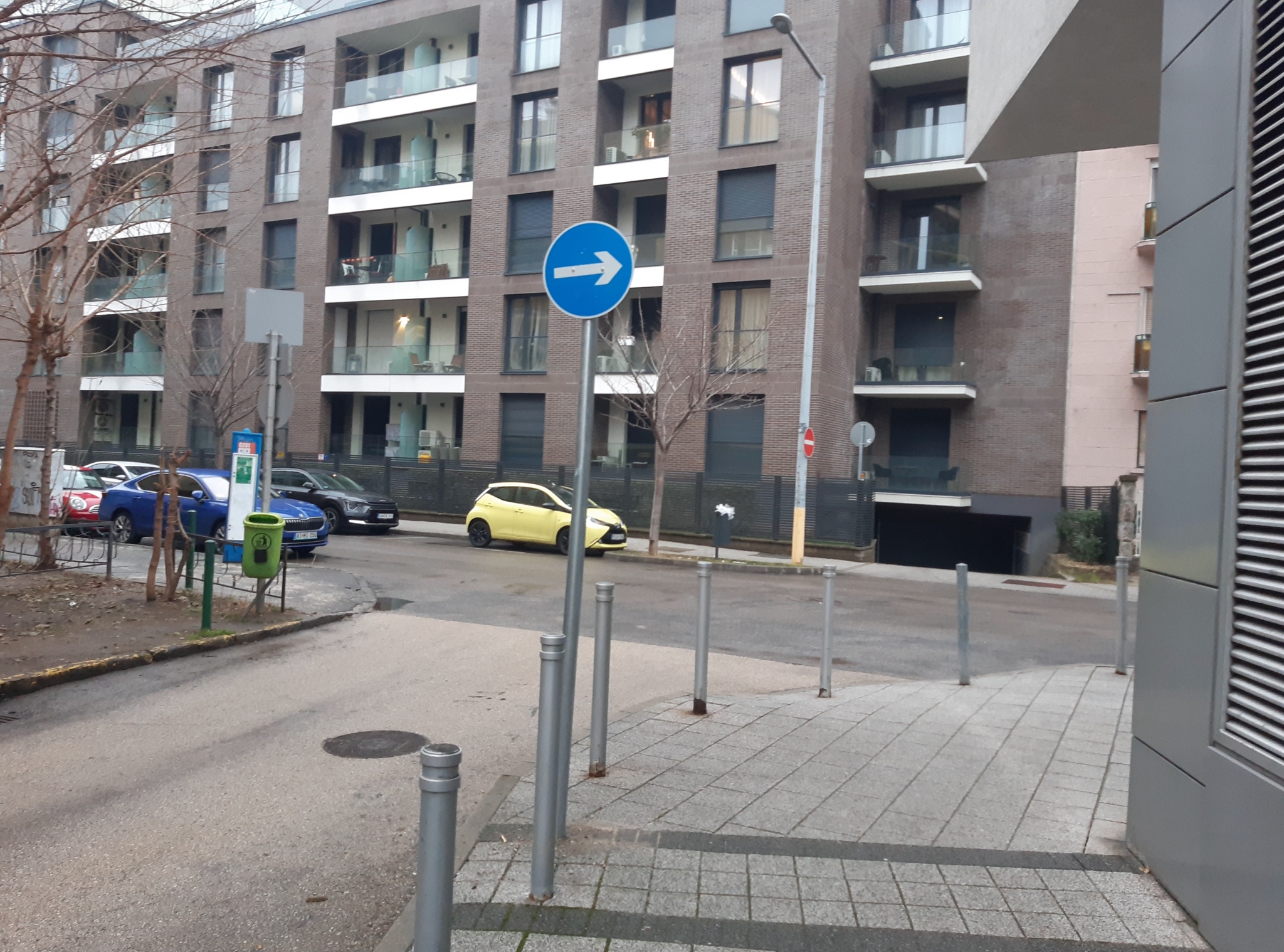 A II. kerület Csapláros utca a Kapás utca felől egyirányú, de az Erőd utca felől kerékpárral be lehet hajtani. Lásd az első fotót. A kerékpáros a Csapláros utcán végighaladva elér a Kapás utcáig. Itt semmi sem jelzi, hogy nem kanyarodhat balra. Sőt, mivel a Kapás utca túloldalán bal irányban el van helyezve egy várakozni tilos tábla, ez még meg is erősíti azt a benyomást, hogy a Kapás utcában bal irányban lehet haladni. Lásd a második fotót. Tehát a kerékpáros befordul balra a Kapás utcába. Azonban a Kapás utcát egyirányúként jelöli a Varsányi Irén utca sarkán levő KRESZ tábla, kerékpáros kiegészítő tábla nélkül. Lásd a harmadik fotót. Így az itt közlekedő jármű nem számít szemből jövő kerékpáros forgalomra. Ez balesetveszélyes. Ezért kérem, hogy a Kapás utcának a Varsányi Irén utcai kereszteződésében az egyirányú forgalom tábla alatt helyezzenek el egy kerékpáros kiegészítő táblát.