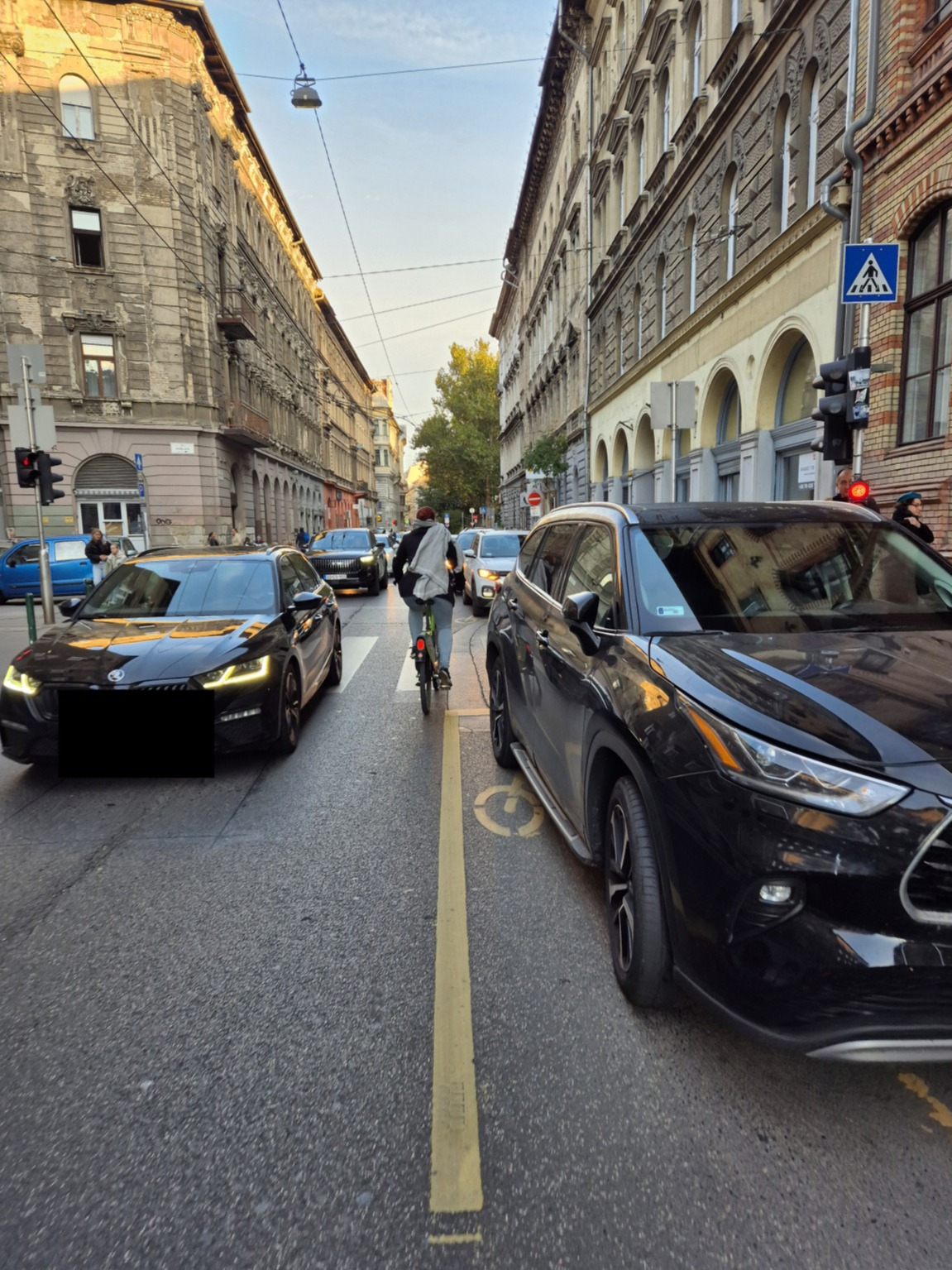 Érdemes lenne pollerekkel védeni itt a kerékpársávot, mert szemmel láthatóan senkit sem zavar,hogy tilos rajta megállni...elég veszélyes helyzetet teremtenek így.