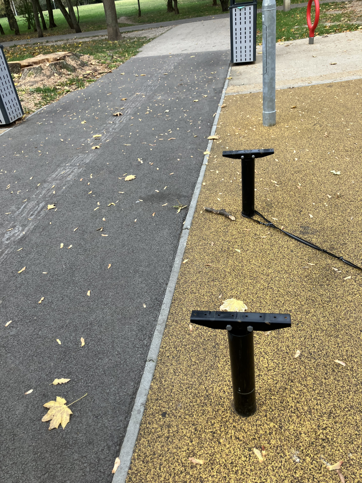 Az Óhegy parki új játszótéren hetek óta veszélyes vasdarab türemkedik!