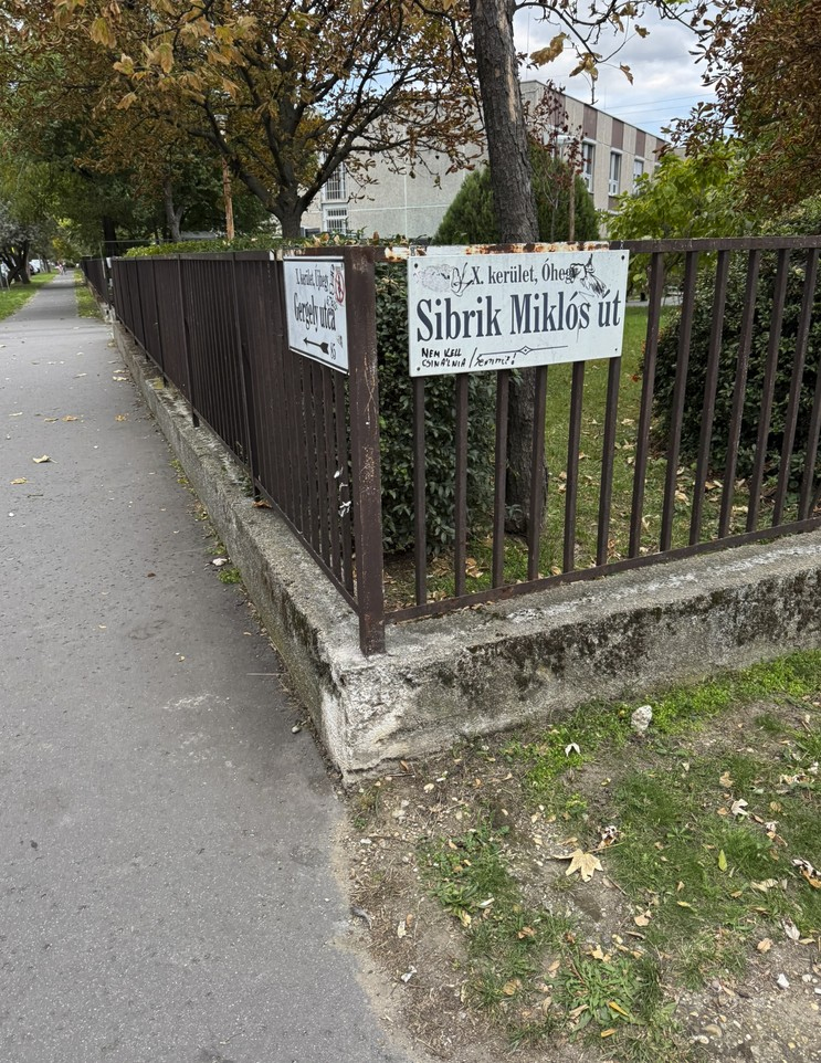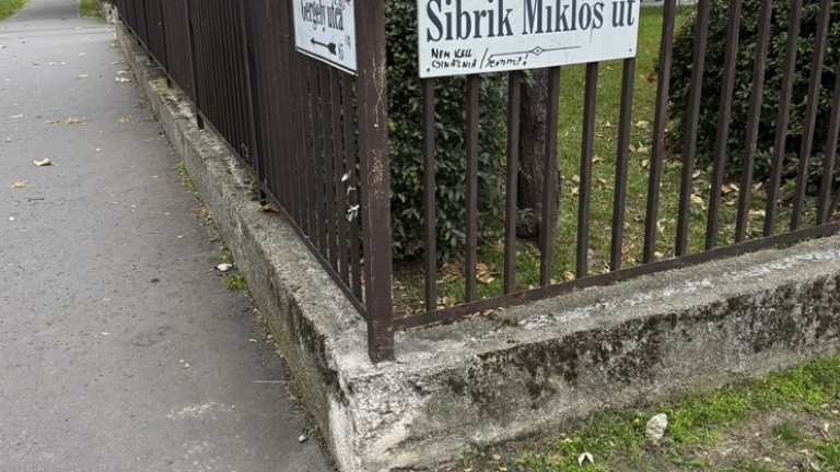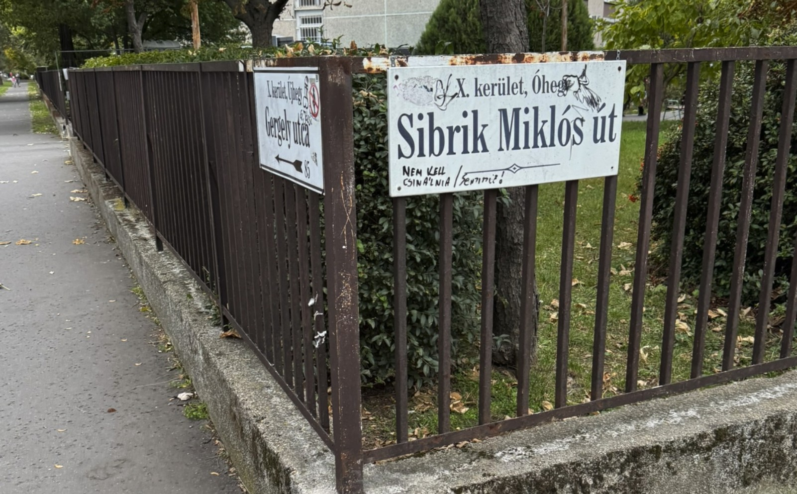 A képen láthatóan az utcatáblák össze vannak firkálva a Gyergely/Sibrik M. utca sarkán.