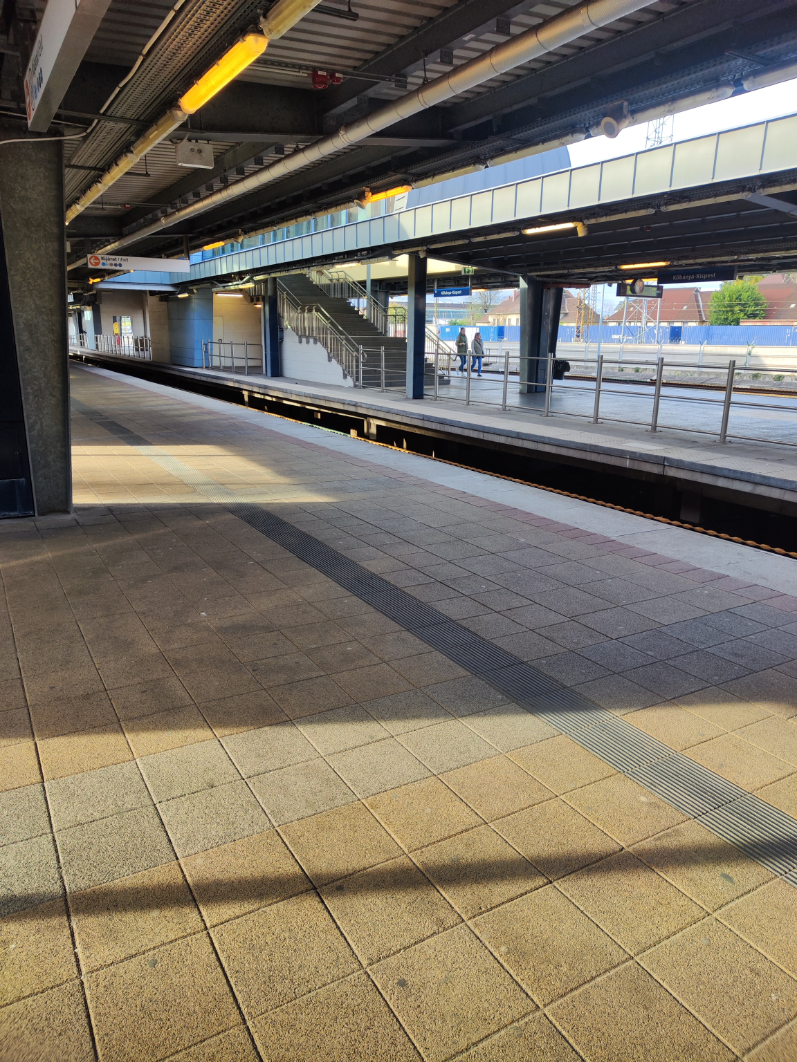 A Kőbánya-Kispest végállomás metró megállója, koszos minden tele van eldobott rágóval.