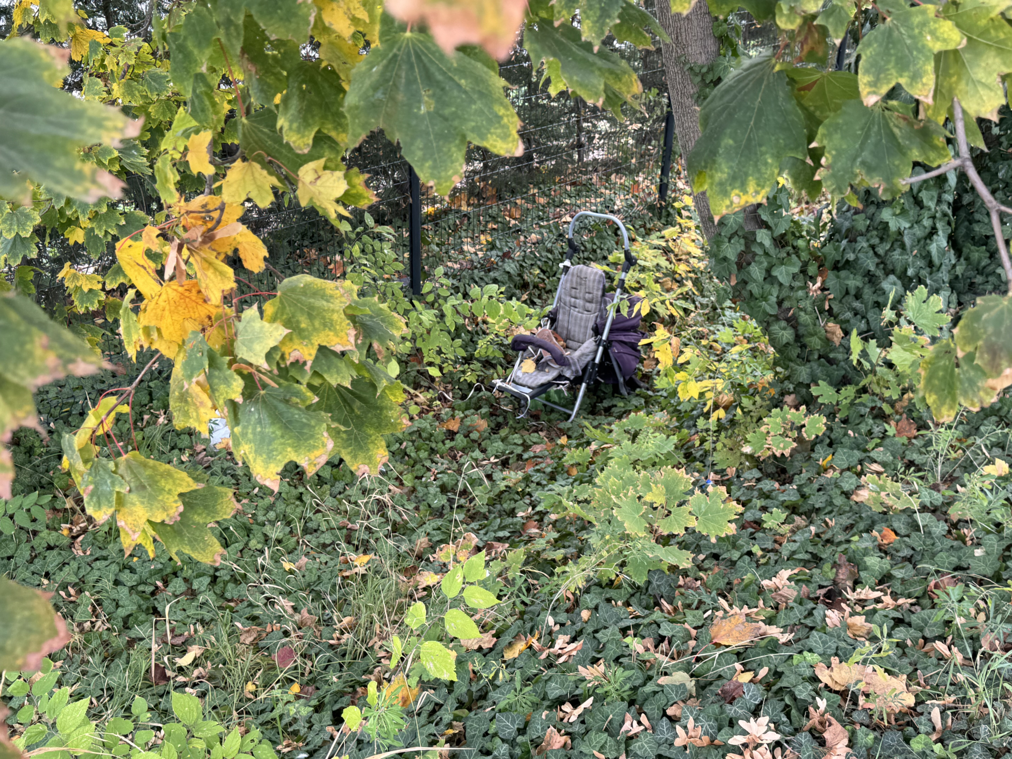 Egy kidobott babakocsi éktelenkedik az árokban.