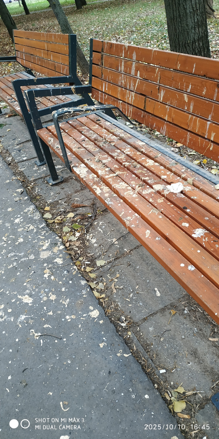 Az egész Békásmegyeri lakótelepen probléma a vastagon és nagy mennyiségben álló madárürülék. A konkrét fotók a Juhász Gyula utca 2. északnyugati oldalán és a Juhász Gyula utcával párhuzamos, a Római Park építkezés mellett futó keskeny utca melletti padoknál készültek, de az egész lakótelepen minden utcára jut 3-4 ilyen góc. Érthetetlen, mert ez az első év, hogy ilyet tapasztalok - 48 éve itt élek.