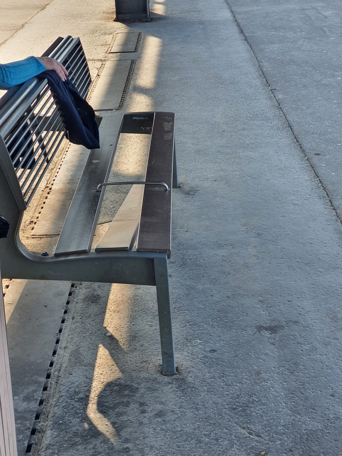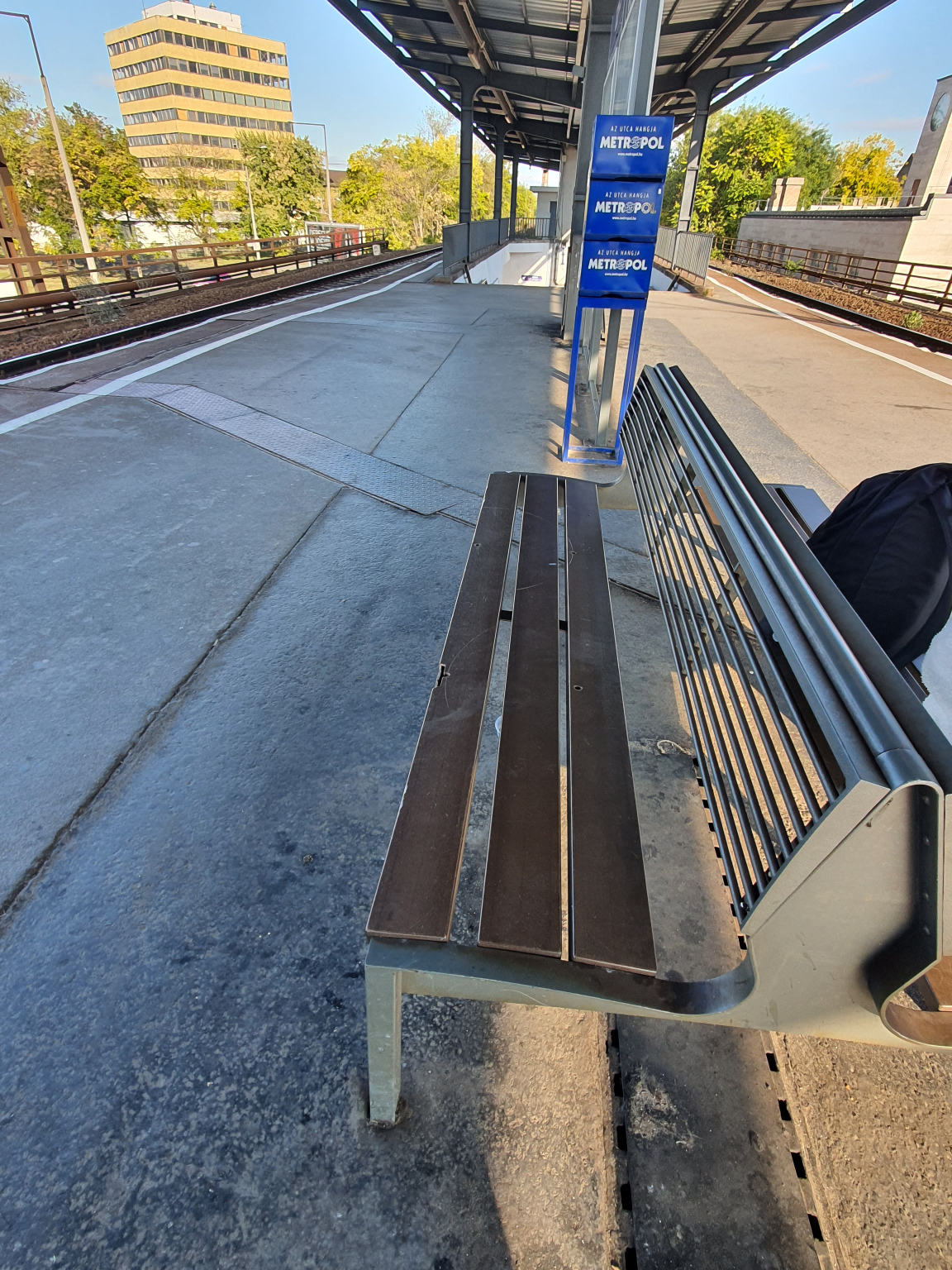 Leszakadt és lyukas padok Kőbánya-alsó vasútállomáson. Valószínűleg ellopták a fém elválasztólat, ezzel megrongálva a padokat.