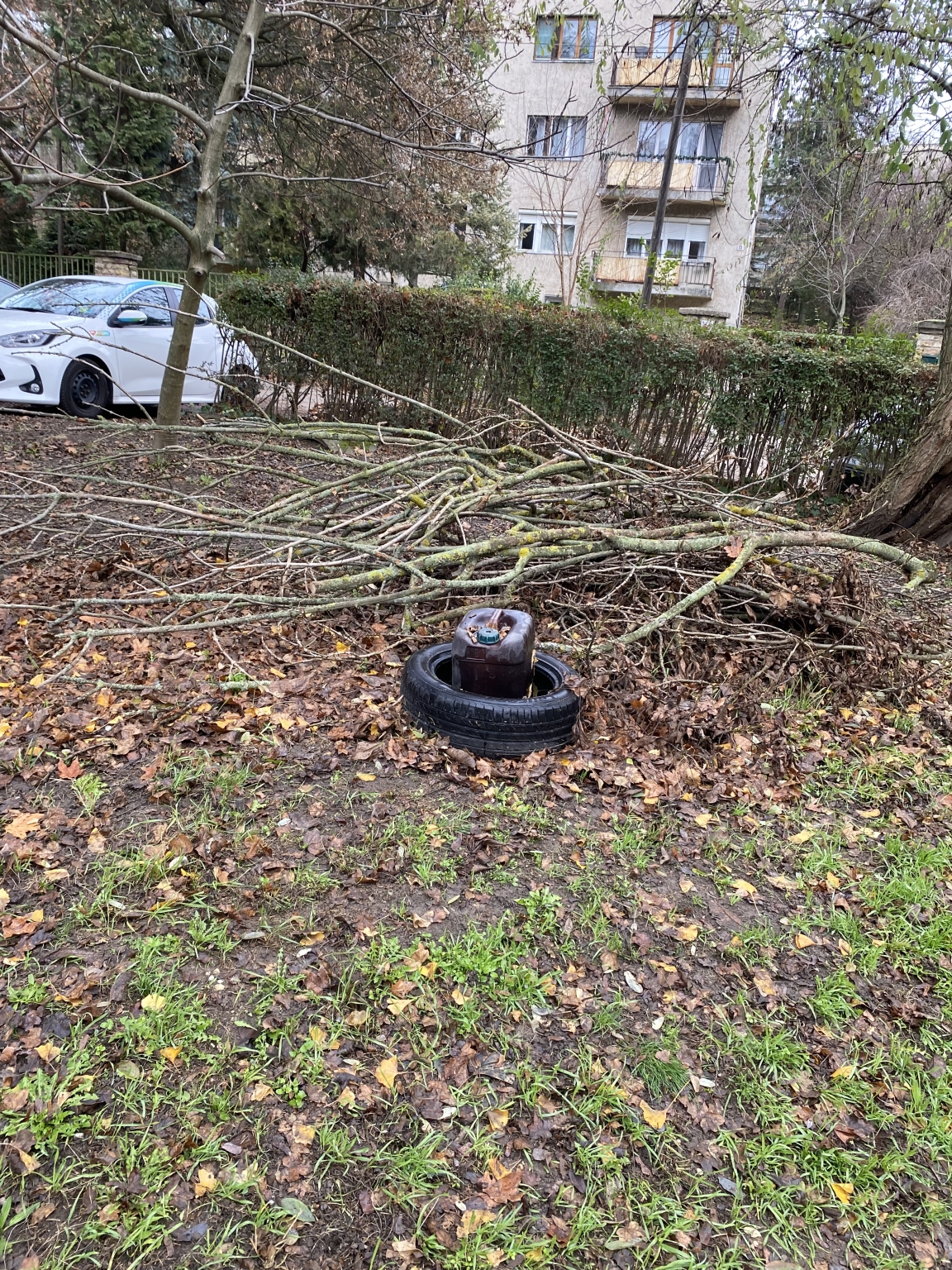 Legyenek szívesek az árok mellől az abroncsot és a kannát elszállítani.