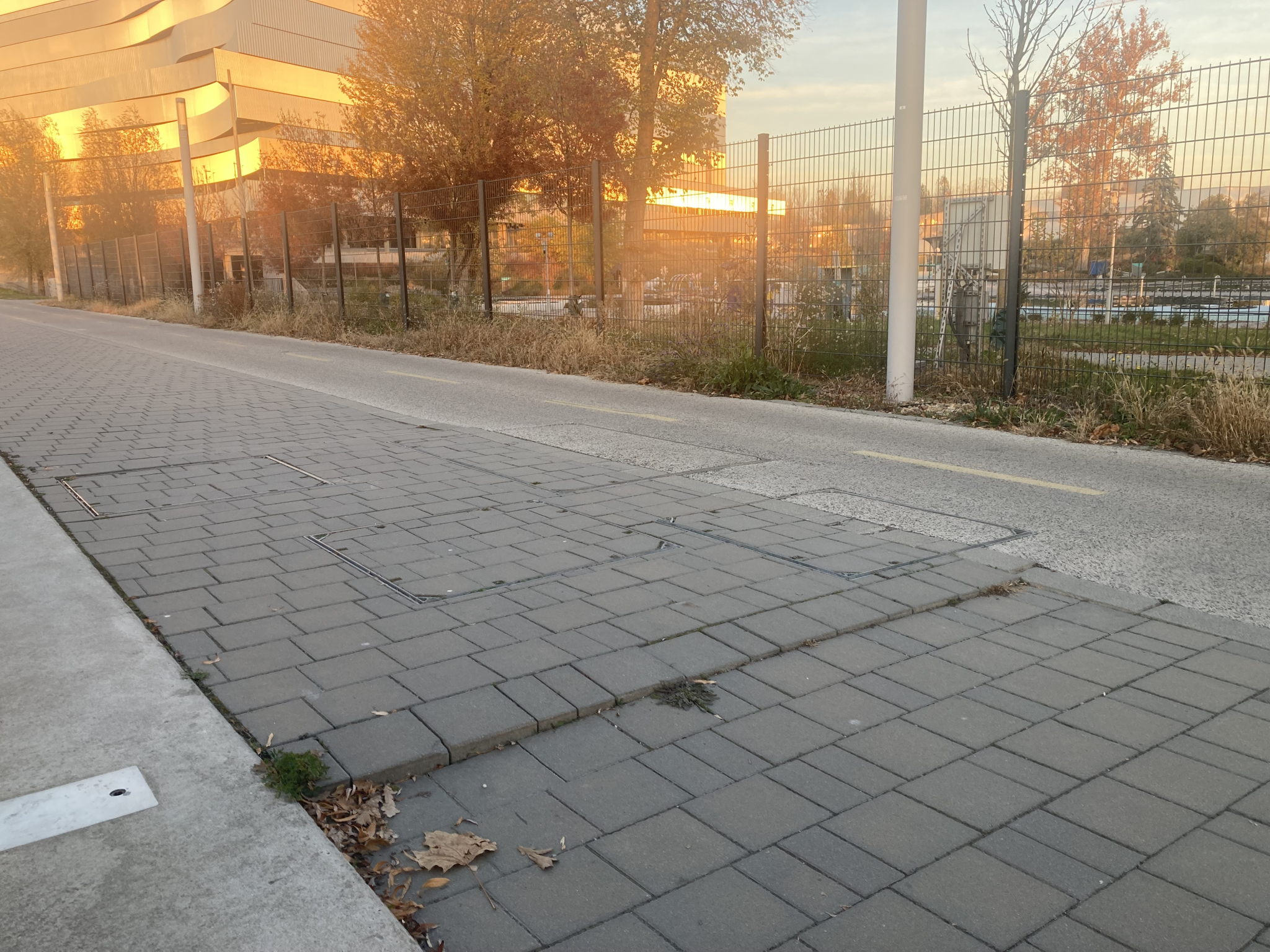 A járda és a kerékpárút burkolata megsüllyedt, a járda balesetveszélyes.