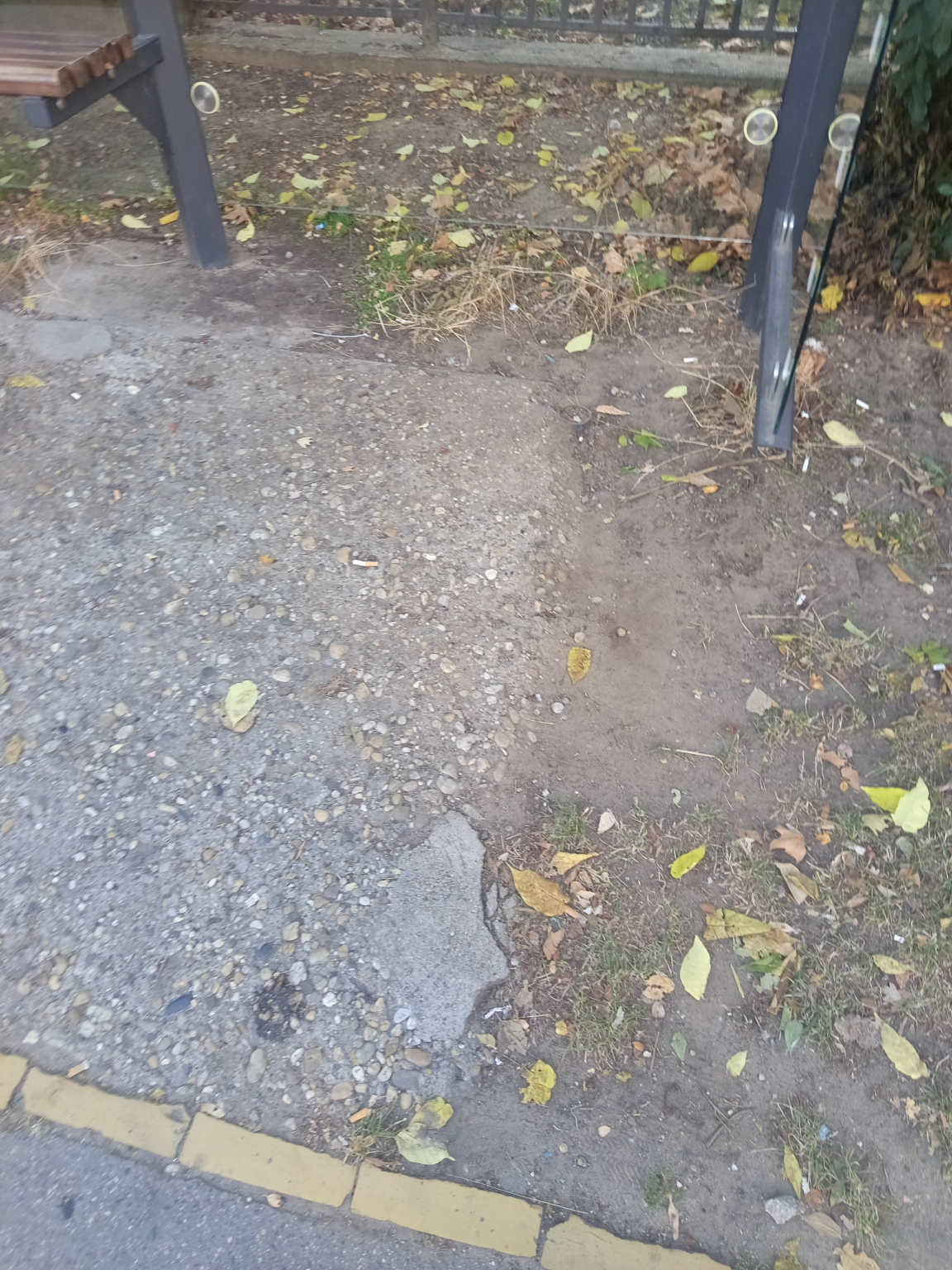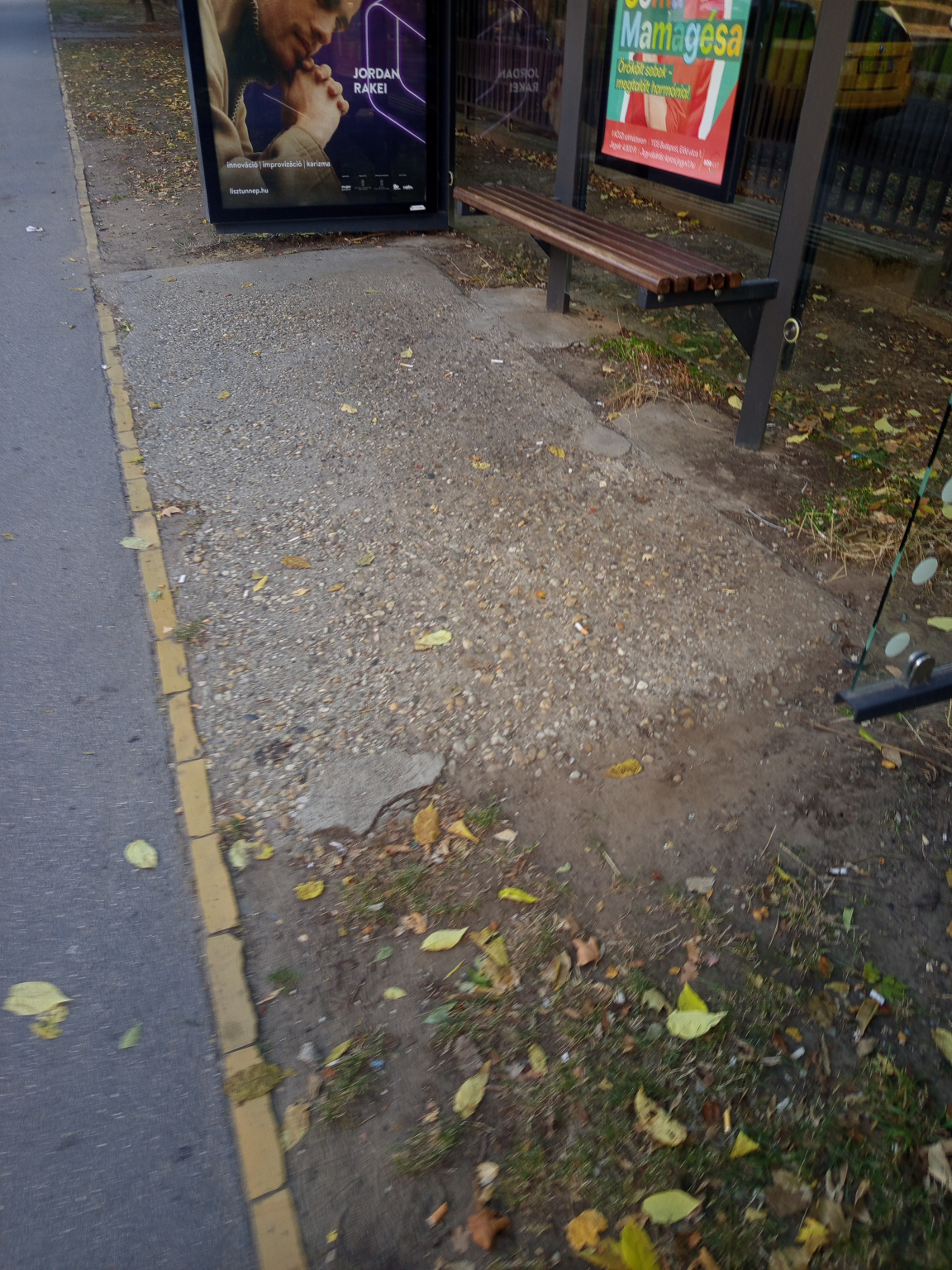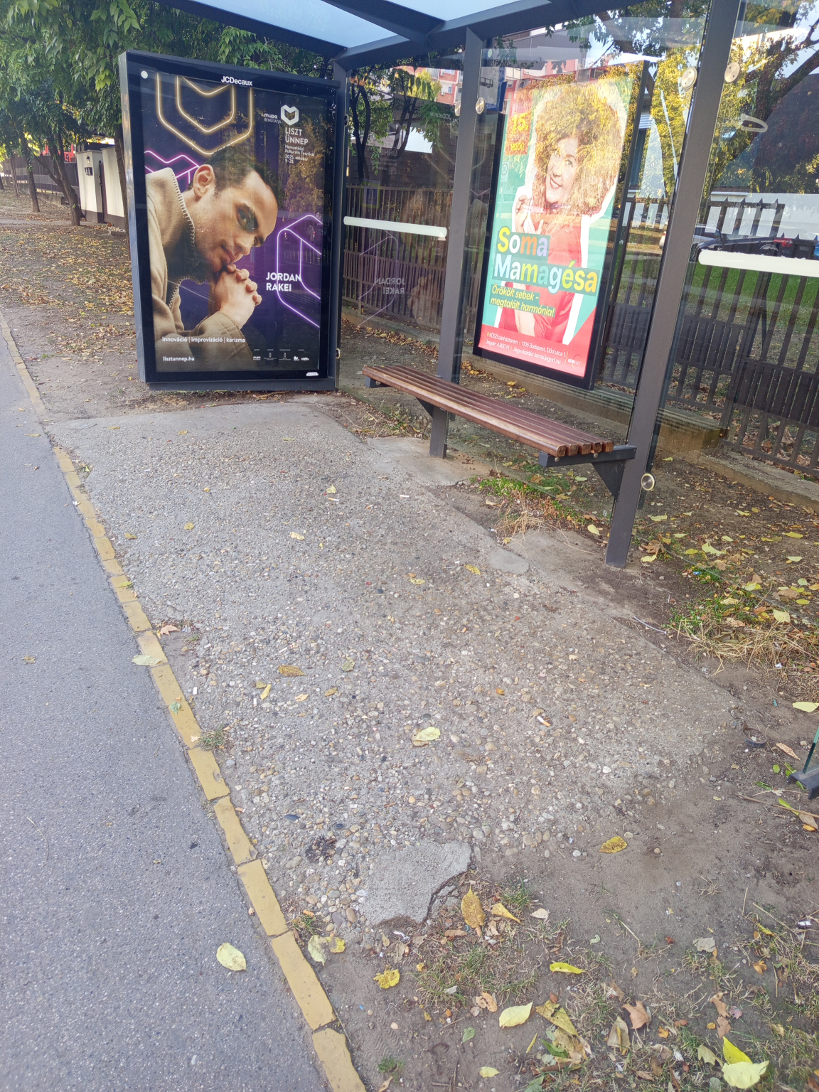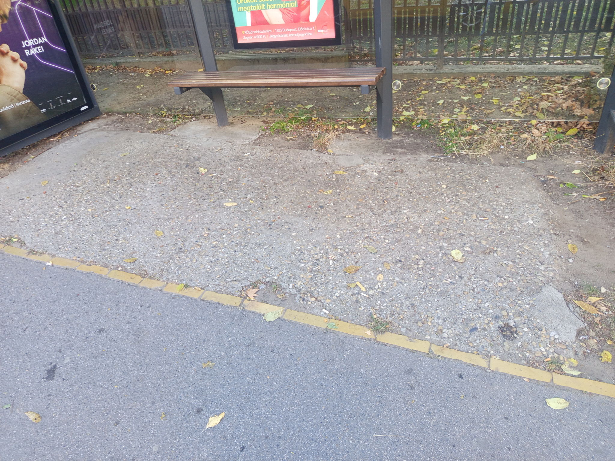 Megkopott pad és balesetveszélyes a megálló betonozás