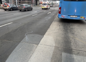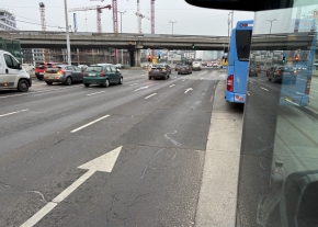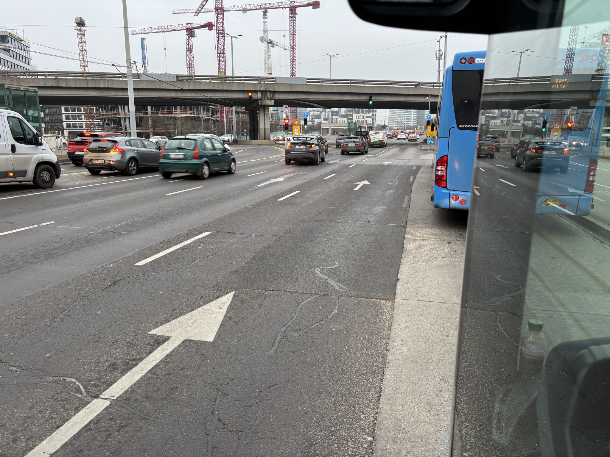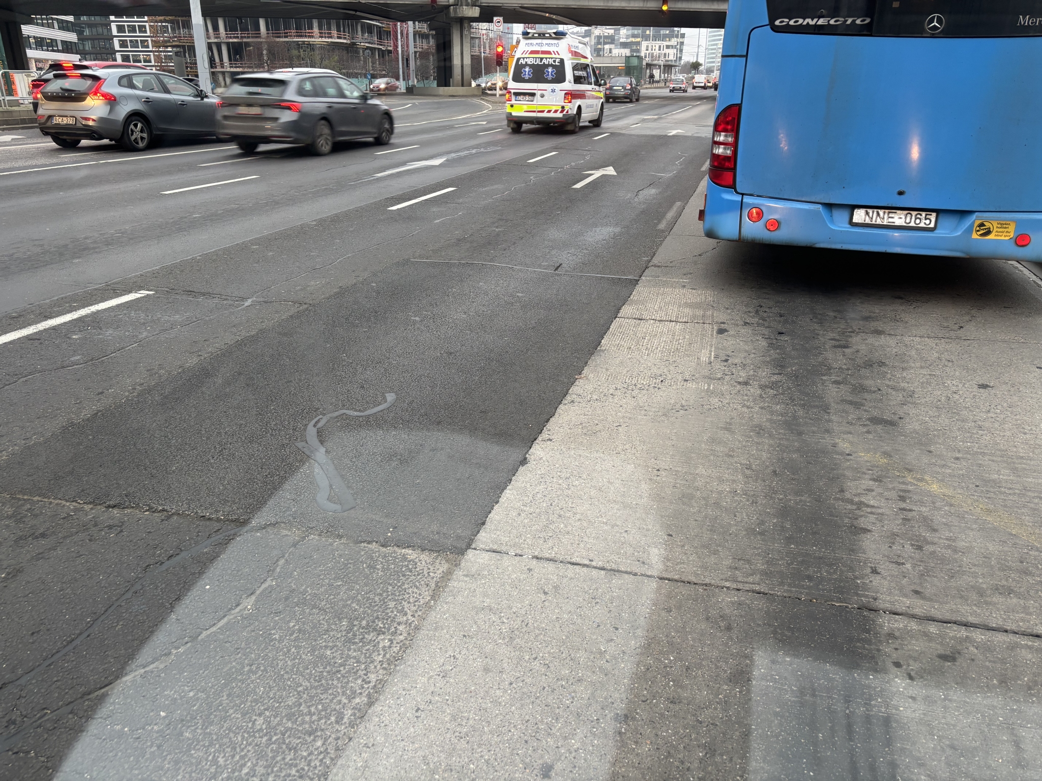 Kátyús úttest.Göncz Árpád városközpontnál a Róbert károly körúton a 34-106 busz végálomásánál.Mint a hogy a képen is látszik egy a horzsolás,mert egy-két autónak leérhetett az alja.