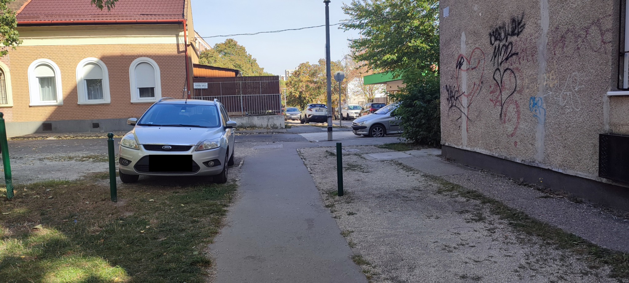 Bp. XX. Attila u. 20 nál az autósoknak vasrudat raktak ki hogy ne álljanak be a lakótelepre. A két autó közötti vasrudat kiütötték az autösok és bejárnak az autókkal. Kérjük hogy betonozzák le ne tudjanak beállni. Azonkivül egy vasrudat már elloptak, nem szeretnénk ha ez is eltünne. A jobboldali ezüst autótól balra a 2. rúd. Plusz egy rudat is kérünk pótolni amit másfél éve kérünk az önkórmányzattól. Semmit nem tesznek. Az ezüst autó jobboldalán volt egy vasrúd oda kérünk pótlást.