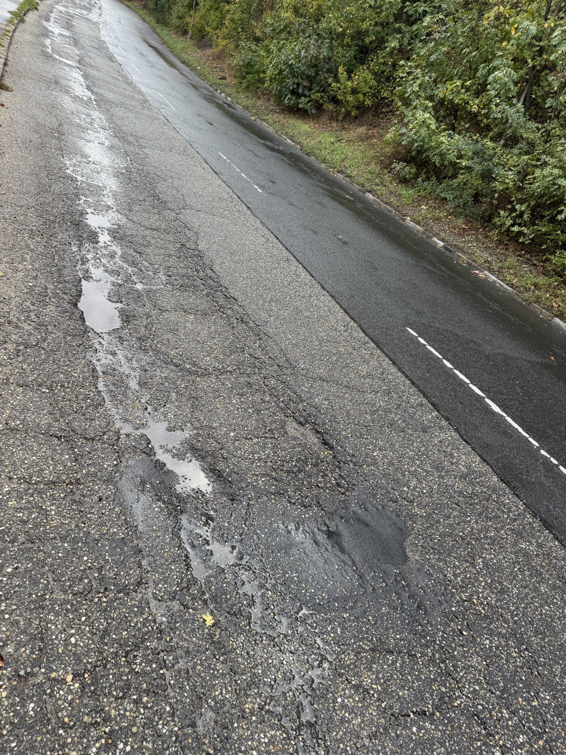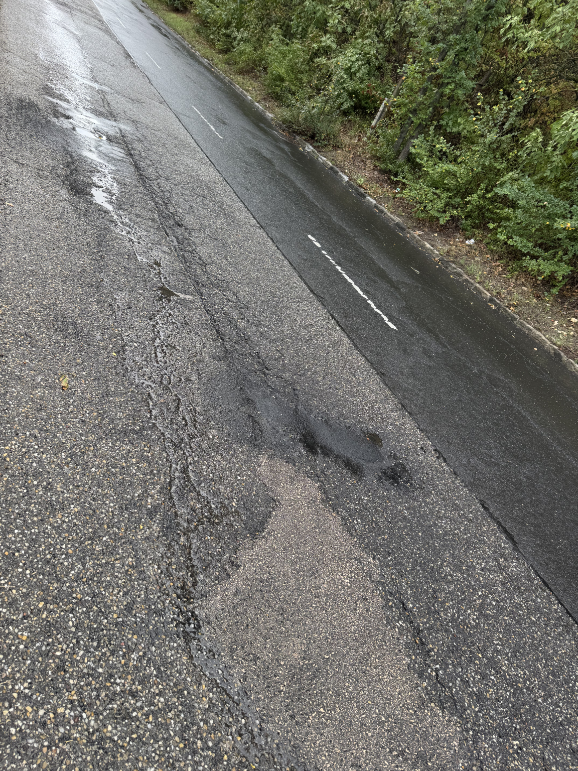 Továbbá a Szépvölgyi út város felőli részén, az Ürömi u. kereszteződésnél az aszfalt erősen hullámos, ami gyakorlatilag az egész Szépvölgyi útra jellemző.