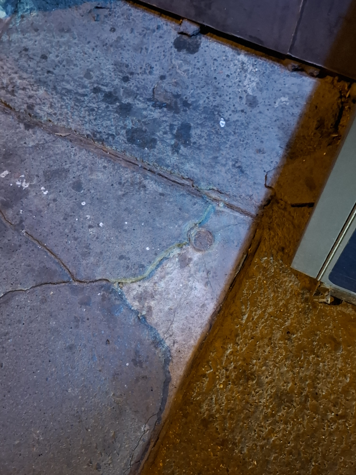 A fedlap több helyen törött, botlásveszélyes. Kérem javítsák!
