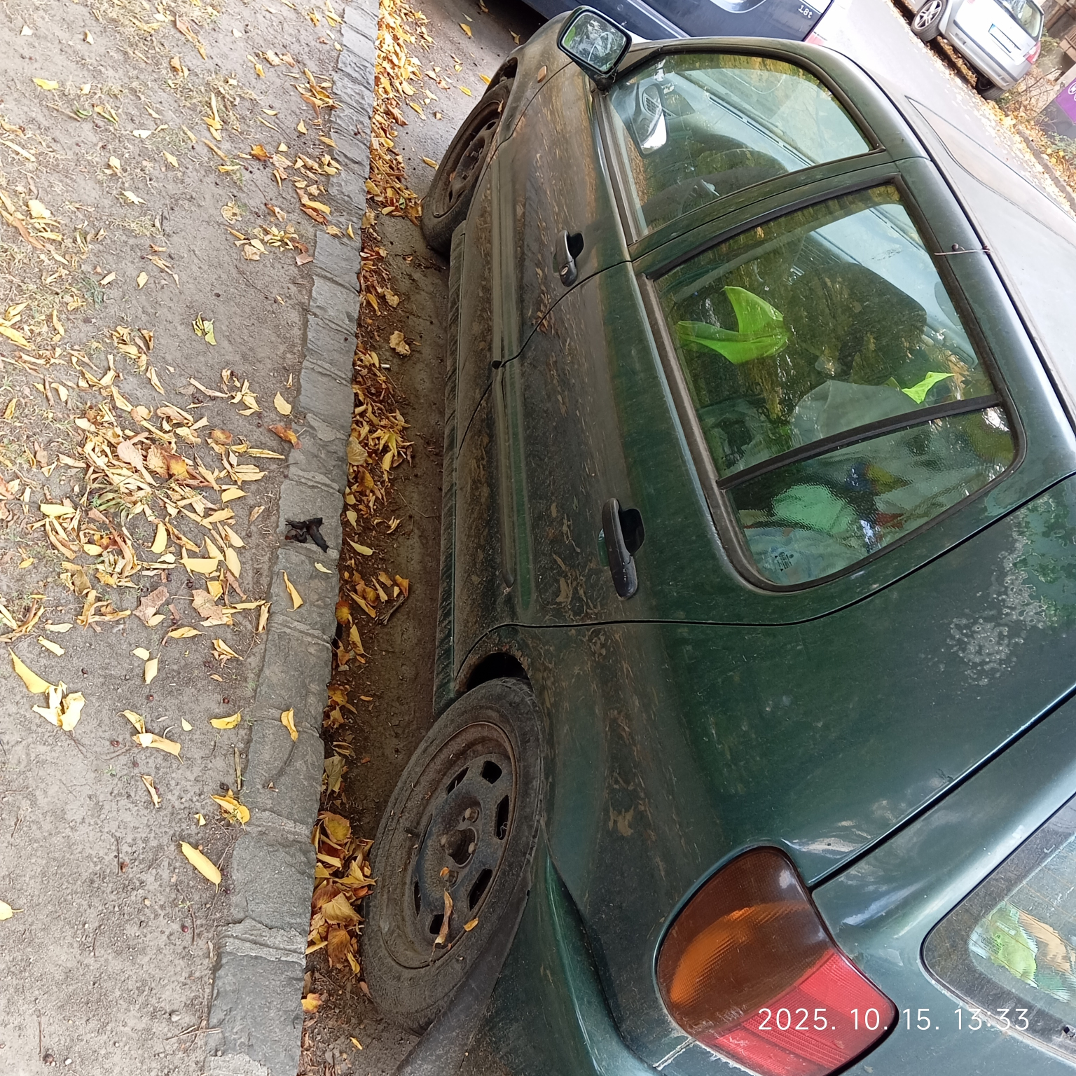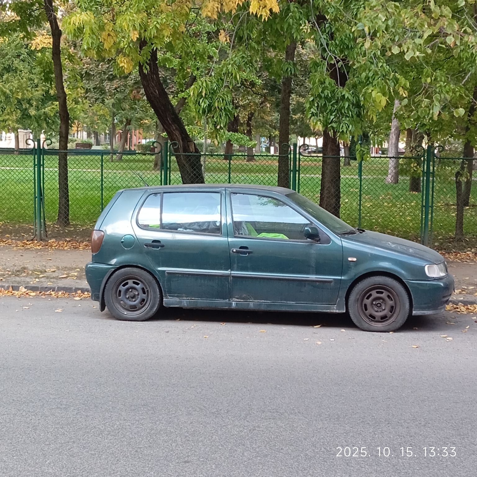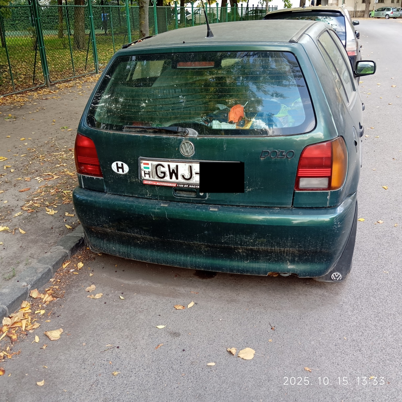 Hónapok óta tárolják a Kós Károly téren a 2023-ban lejárt műszaki vizsgás lommal teli sötétzöld Volkswagen Polo autót.