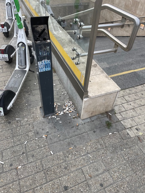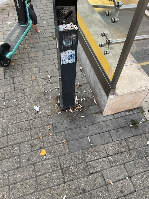 A bejelentett csikktartót nem Társaságunk üzemelteti. Munkatársaink napi szinten összeseprik a területünkre hulló csikkeket.