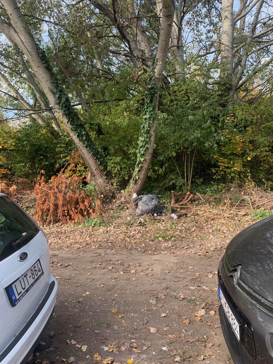 Szemét közterületen az utolsó villanyoszloppal szembeni oldalon a fa tövében