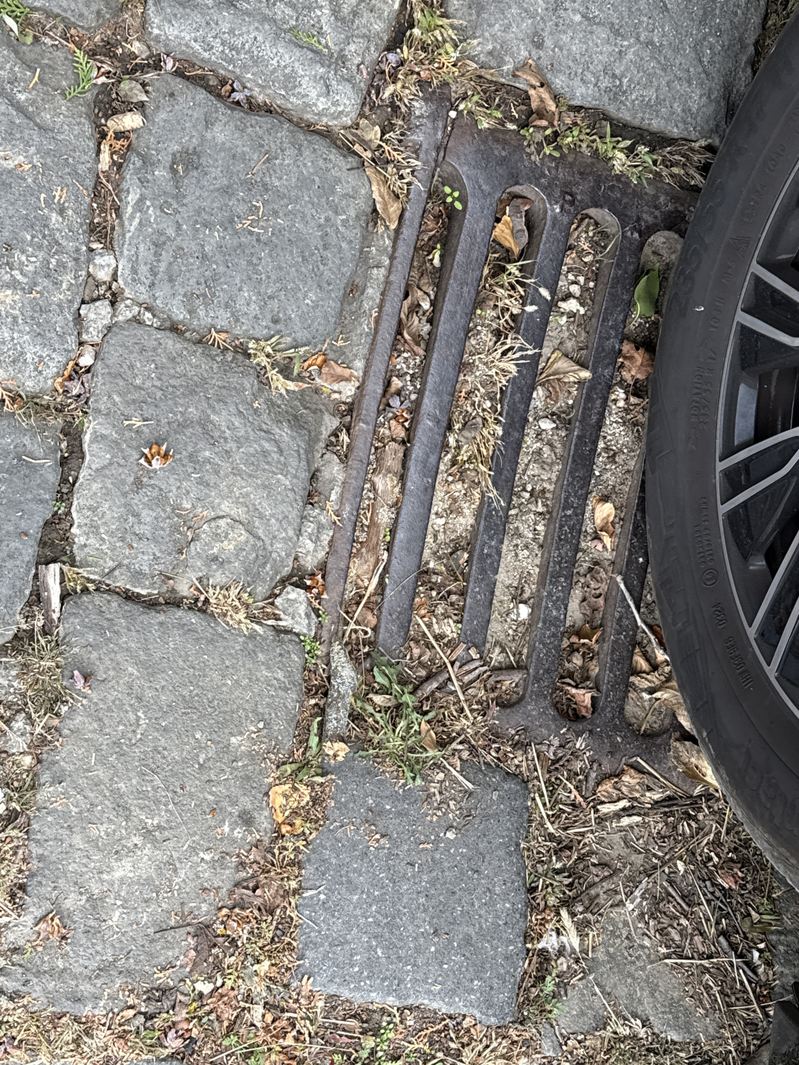 A Galóca utcai csőtörés (10.12.) következtében teljesen eltömődött a hegyről lezúduló esővizeket gyűjtő két csatornalefolyó (autó miatt nem tudom megfelelően fotózni).