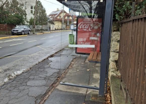 Sasadi úton a Nagyszalonta köz buszmegálló oldalsó üvege összetört.