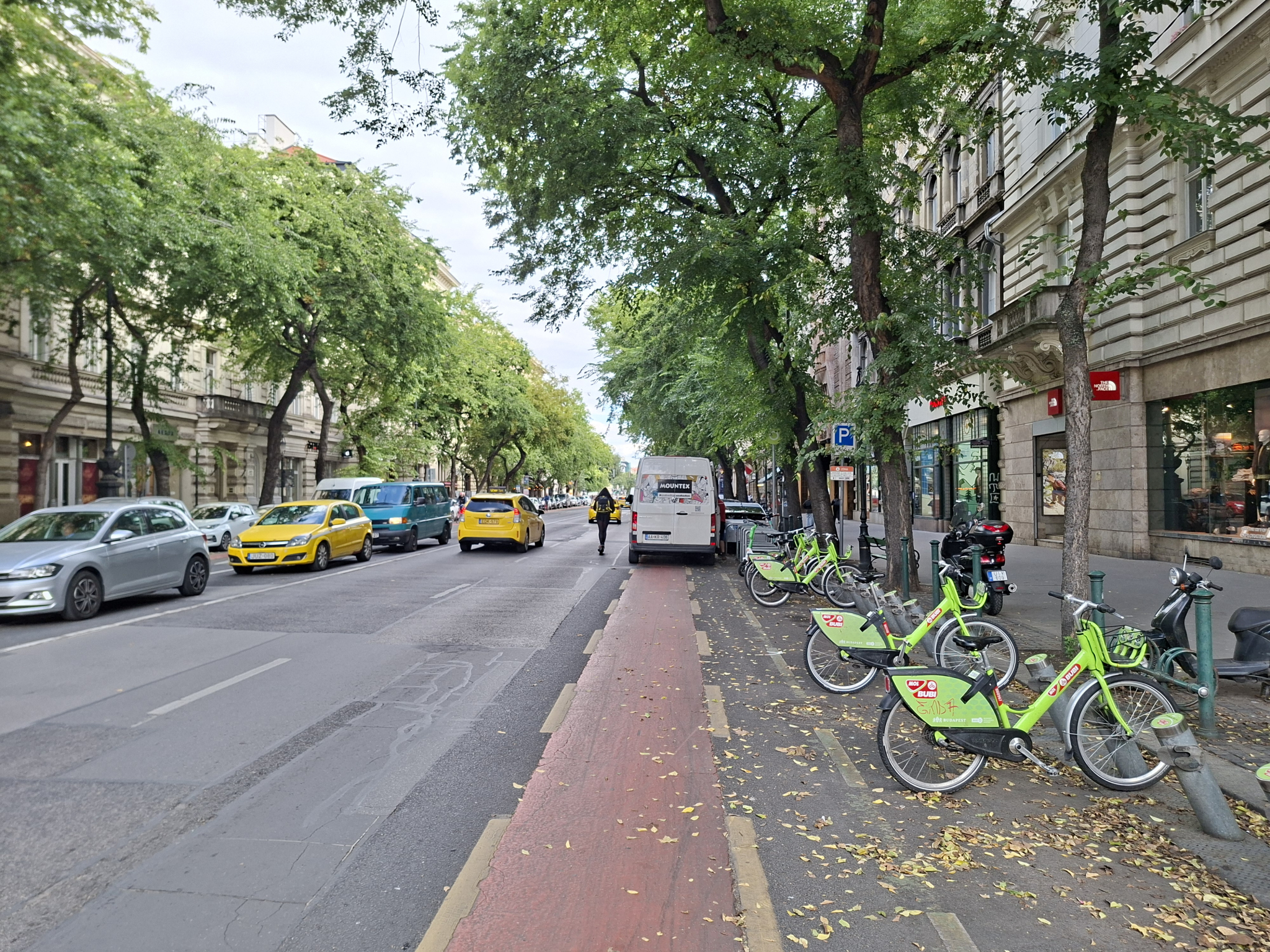 Az Andrássyn a képen látható helyen rendszeresen leparkolják a bringasávot. Annak ellenére, hogy 30 méterre van kijelölt rakodóhely. A közteresek semmit nem csinálnak, pedig a terület be van kamerázva, látható, hogy mi folyik ott.