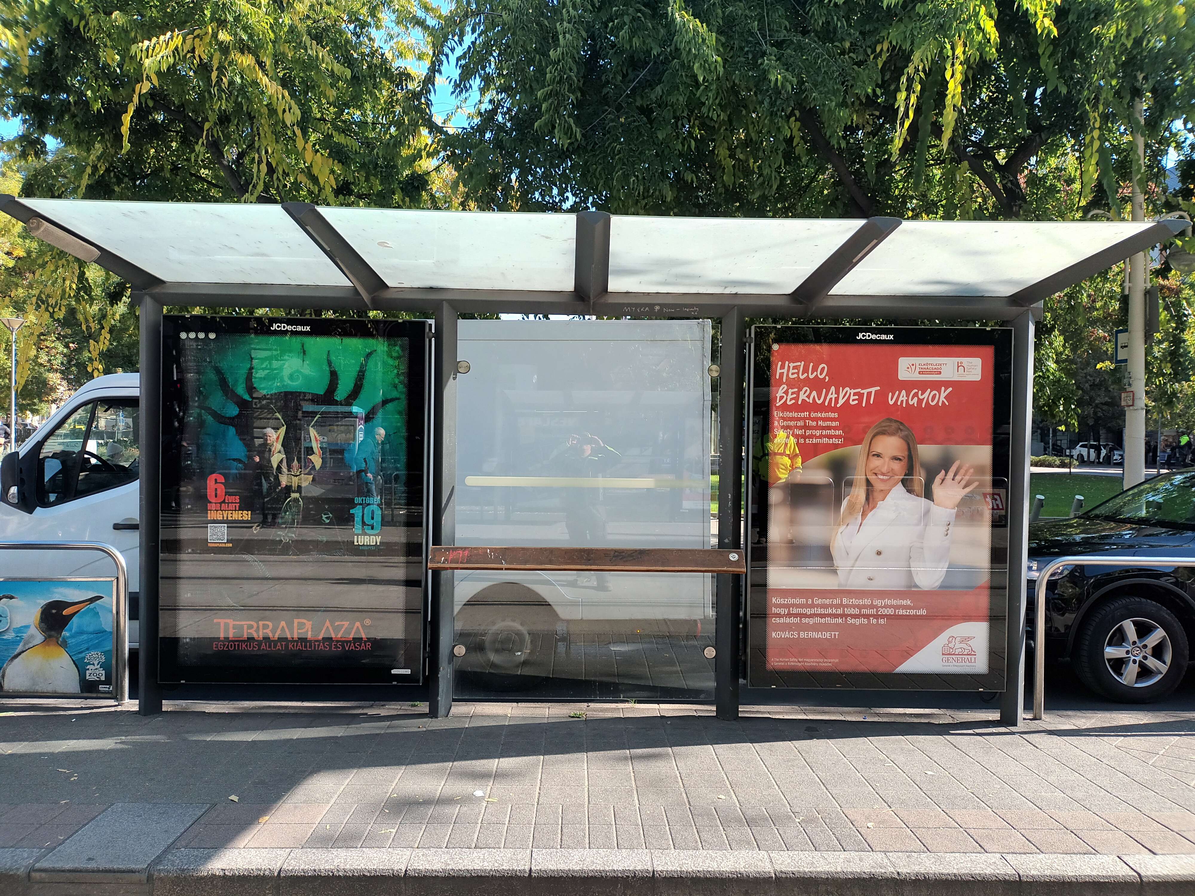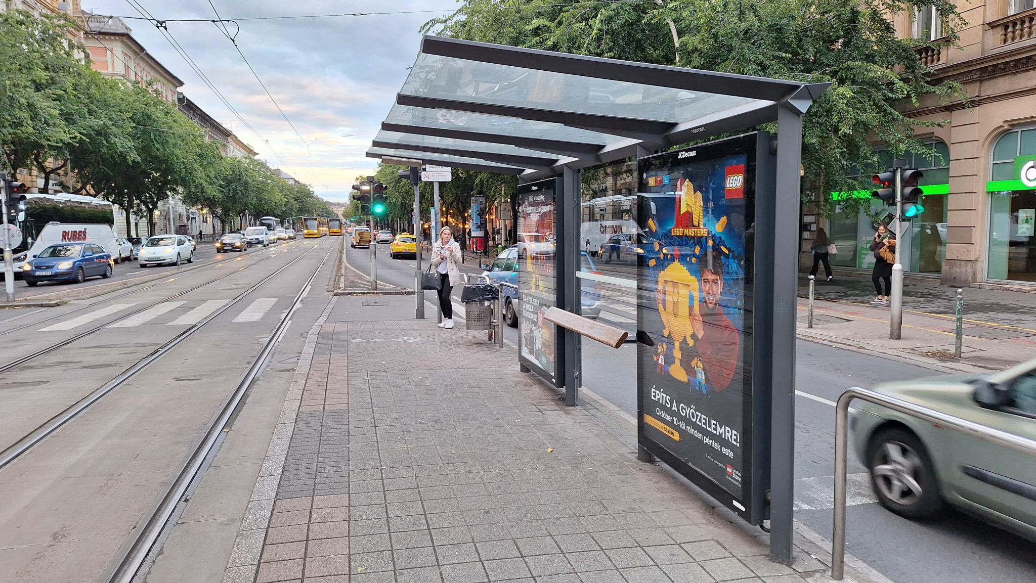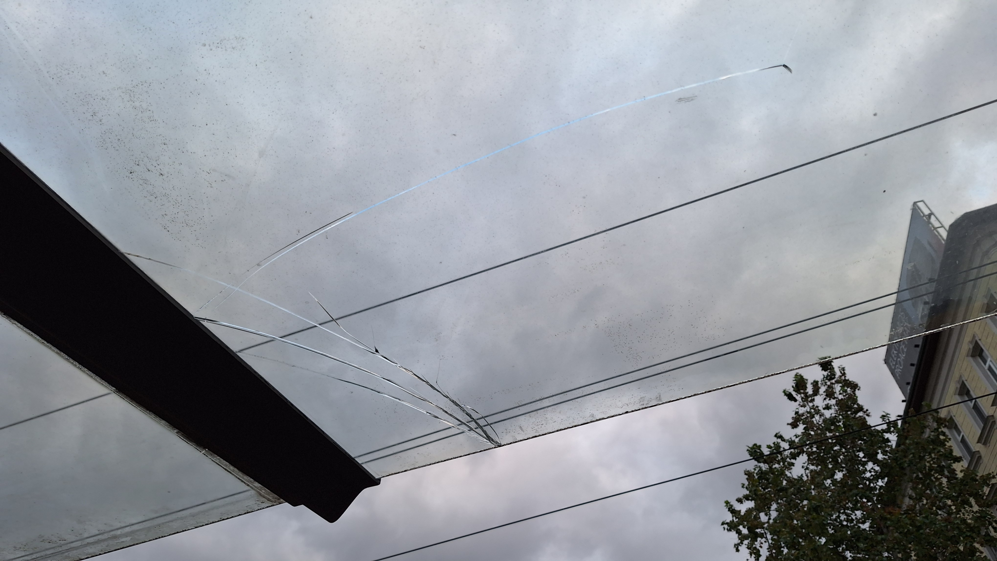 A Rákóczi téri villamosmegállóban be van törve az egyik váró teteje.