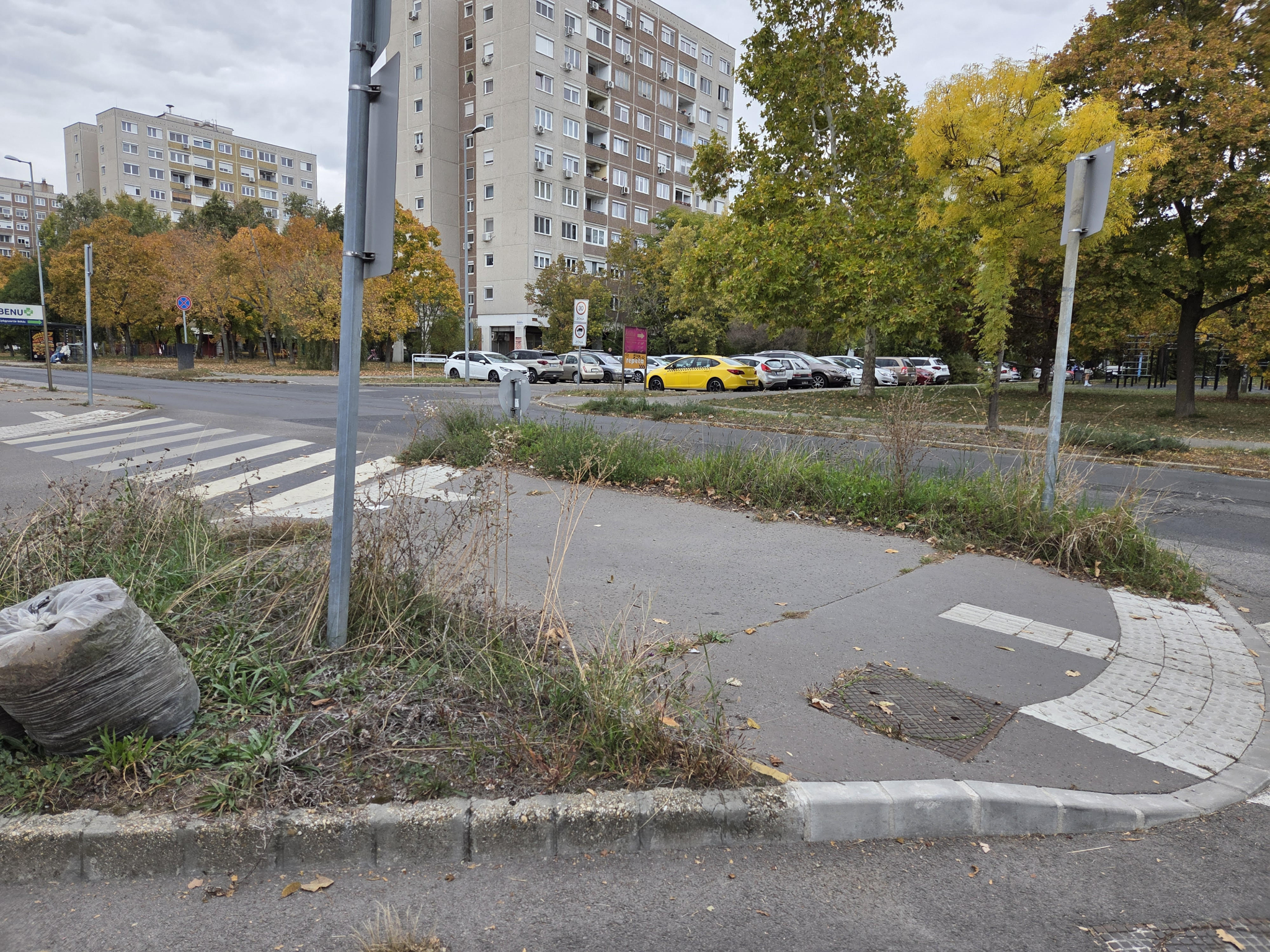 Ezen a rendkívül forgalmas járdaszigeten egész nyáron nem lett lenyírva a gaz. Emiatt az egész környék igénytelenül néz ki az Árpád utca és Pünkösdfürdő utca saroknál.