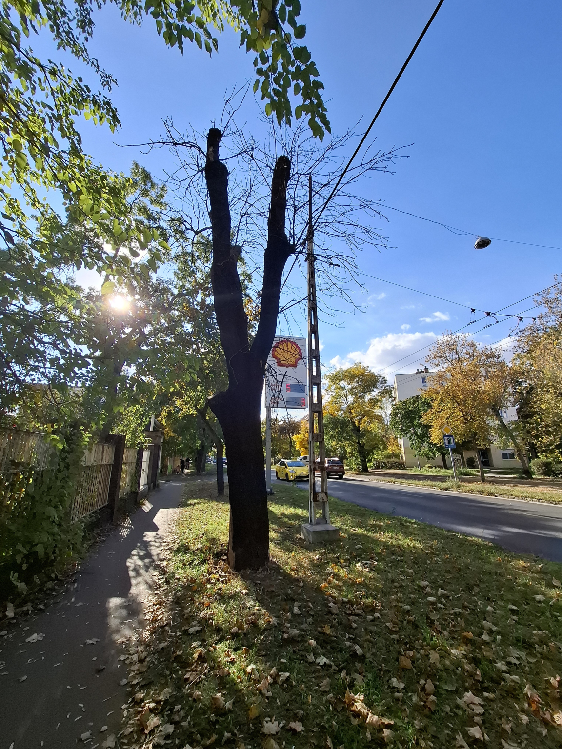 Az Egressy úton a Posta Járműtelep / Benzinkút előtt egy nagy fa kiszáradt, hatalmas kéregdarabok, ágak hullanak le róla. Kérem mielőbb hárítsák el a balesetveszélyt és telepítsenek új fát!