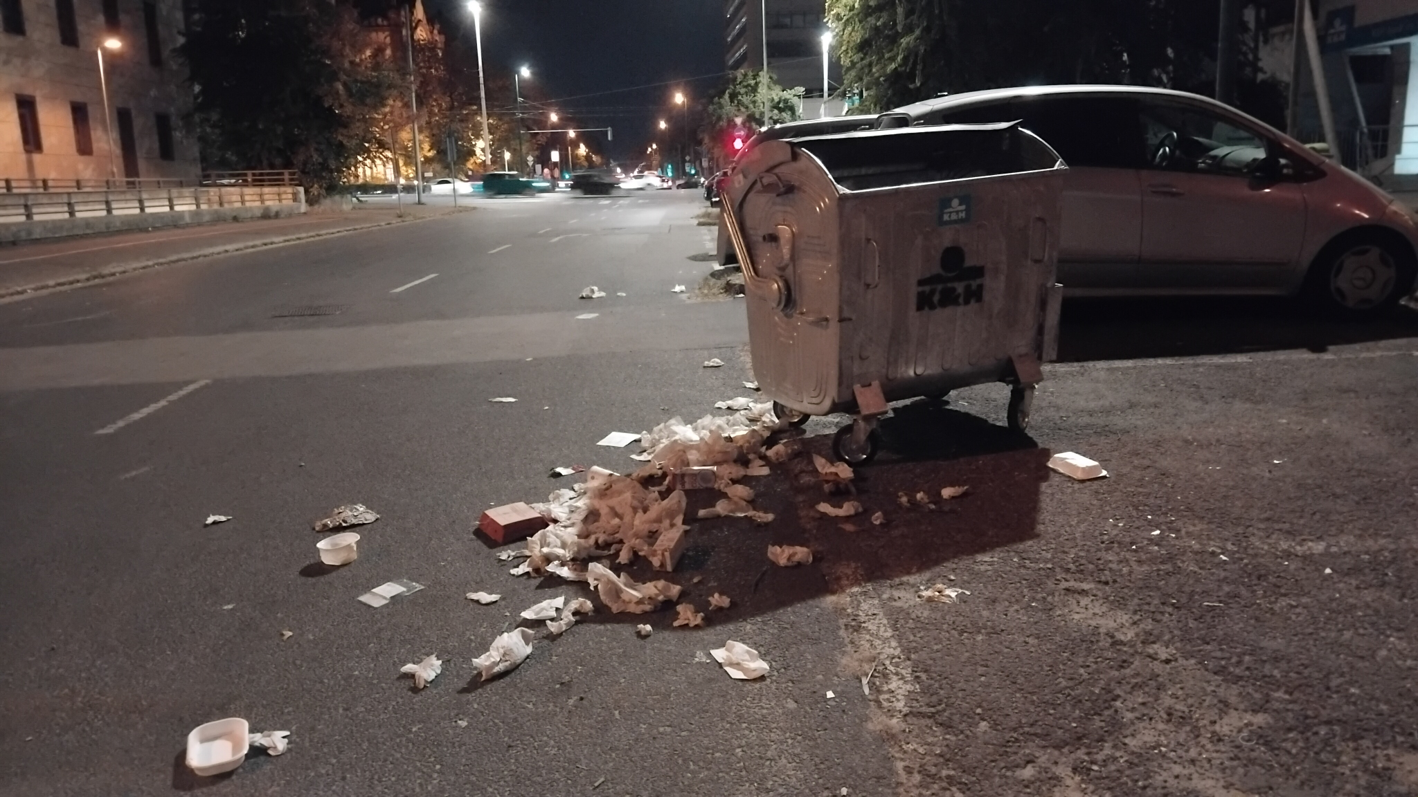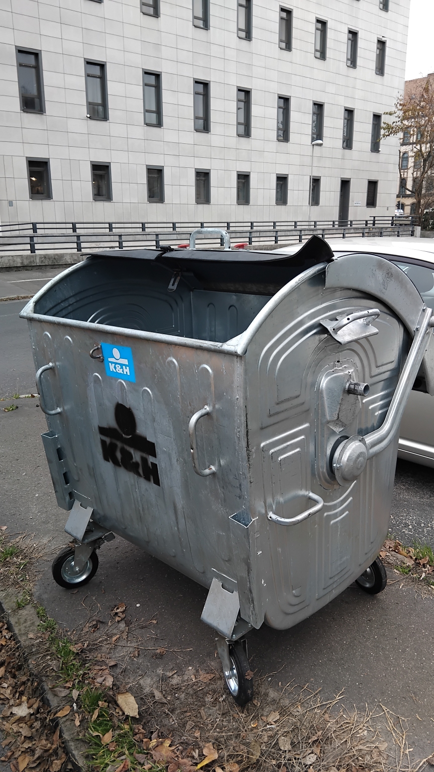 Sajnos nem rekonstruálható a pontos esemény (talán a biztonsági kameráik láthatnák), de a Hungária körút - Ajtósi Dürer sor -Francia úti K&H épület melletti konténerük nyitható, és valakik bizonyos rendszerességgel (néha gyakrabban, néha ritkábban) kipakolják... ilyenkor a banképület és a vasúti átjáró környékét a szél befújja a kikerült - esetleg veszélyes, eü - szeméttel.