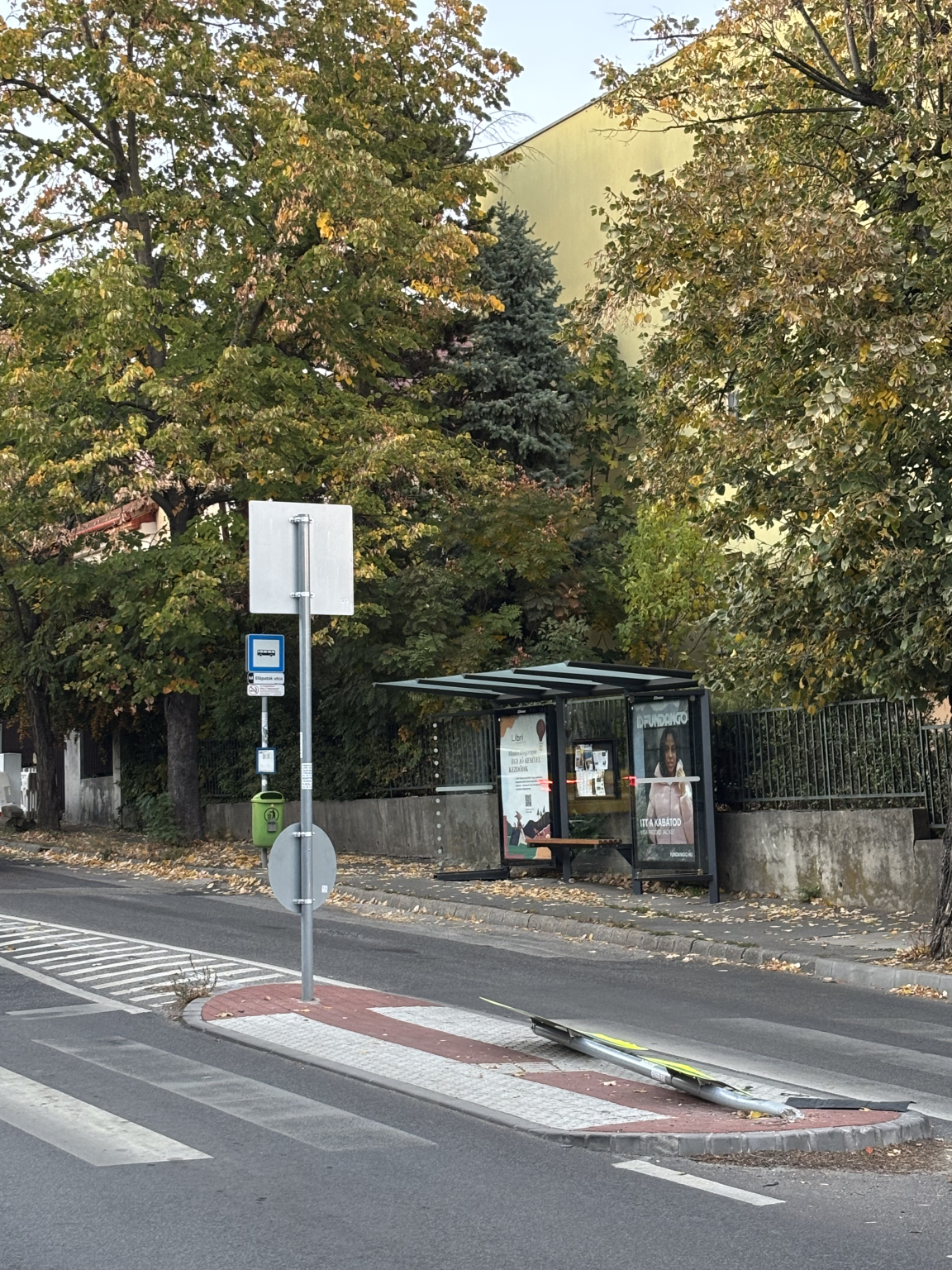 11. Kerületi Sasadi út Sümegvár utcai buszmegállójához tartozó járdaszigetén kidöntötték a közlekedési táblát, akadályozva zebrán való átkelést. Az elmúlt két évben ez legalább a harmadik alkalom ennél a járdaszigetnél!