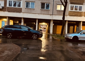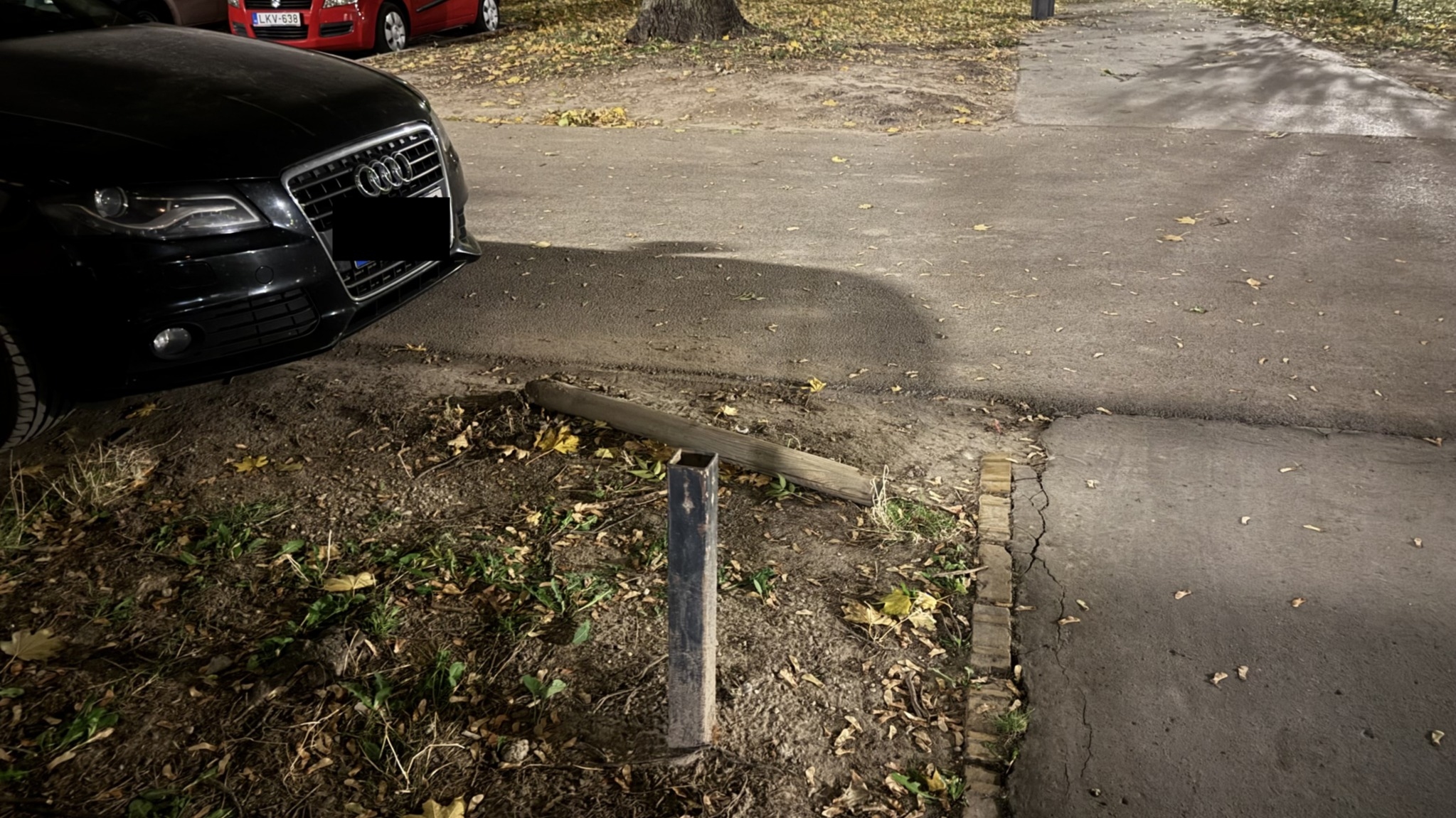 Eldőlt az oszlop sok hiányzik is amúgy és be parkolnak a kertbe.