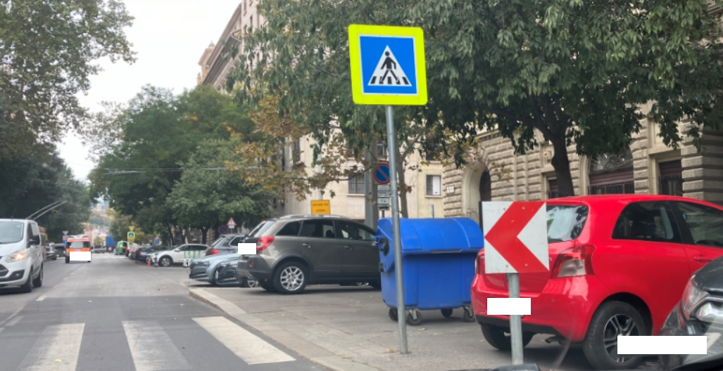 A jelzett helyszínen a zebra környékén a járdán parkolást, kukatárolást fel kell számolni. Veszélyes és szabálytalan. A legcélszerűbb, legegyszerűbb megoldás a pollerek kihelyezése, de ezen felül megvalósításig rendszeres ellenőrzés, figyelmeztetés, szankció.